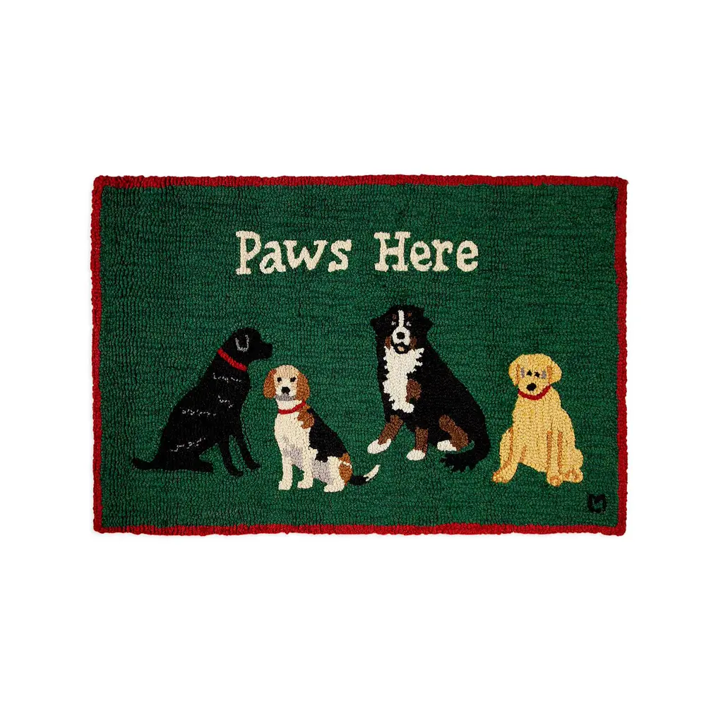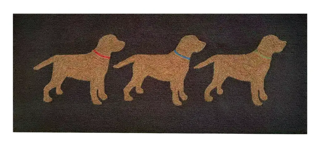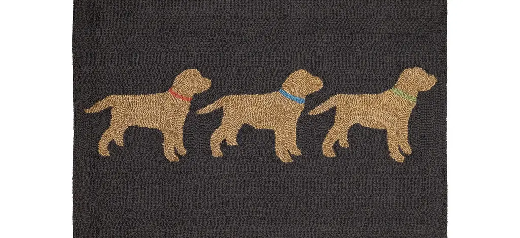 Our Hooked Wool Dogs Welcome Accent Rug is sure to be a favorite among the dog lovers out there. Some of our favorite breeds are represented: a yellow lab and a black lab, a terrier and a bulldog, all illustrated against a warm brown background. Designed by Vermont artist Laura Megroz, our Wool Dogs Welcome Rug is perfect for protecting and decorating your floors, hearth or door step. All-natural, luxurious New Zealand wool is hand-hooked into a thick, chunky loop that provides comfort underfoot and substantial protection for your floors or in front of your fireplace. Durable wool fibers are fire-resistant, sustainable, easy care and non-allergenic. Cotton canvas backing. Use with a rug pad. Spot clean or professionally clean. Imported.