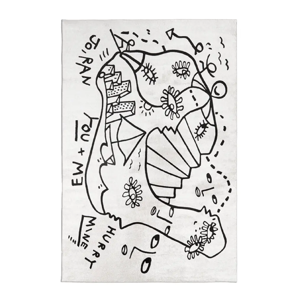 Add an artistic touch to your home with the Qeeboo Dream Dimension Doodle Design Rug from the Linescapes collection. Featuring black and white round or rectangular options in two different sizes, this carpet showcases Shantell's signature line and text designs. Place the small rectangular carpet on your floors for a playful and stylish touch.