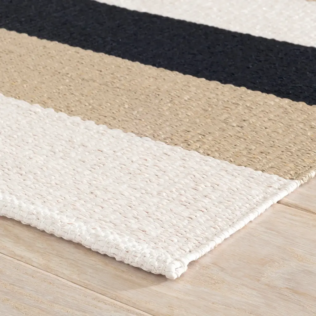 Part of the Gray Benko x Annie Selke curated collection. The Doolittle Handwoven Outdoor Rug features bold, horizontal stripes that serve as an eye-catching foundation in any space, indoors or out. Made of matte PVC fabric that is light but dense, it lies flat, stays put, and is water- and stain-resistant. Terrific for outdoor spaces like patios, porches, and decks, it's an easy-to-clean, quick-drying options.
