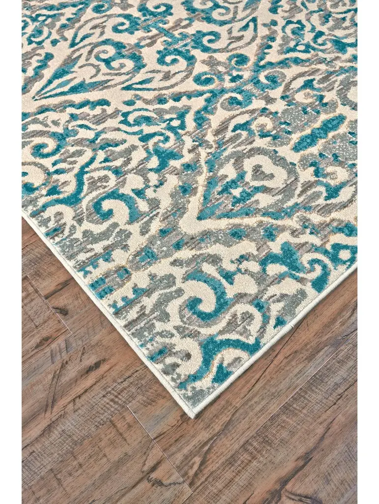 A brilliant use of turquoise enlivens this rug's elegant allover design. Made using a blend of durable, hard-wearing fibers, this rug can stand up to even the most highly trafficked areas of your home. We recommend a rug pad to extend the life of your rug and keep it securely in place.