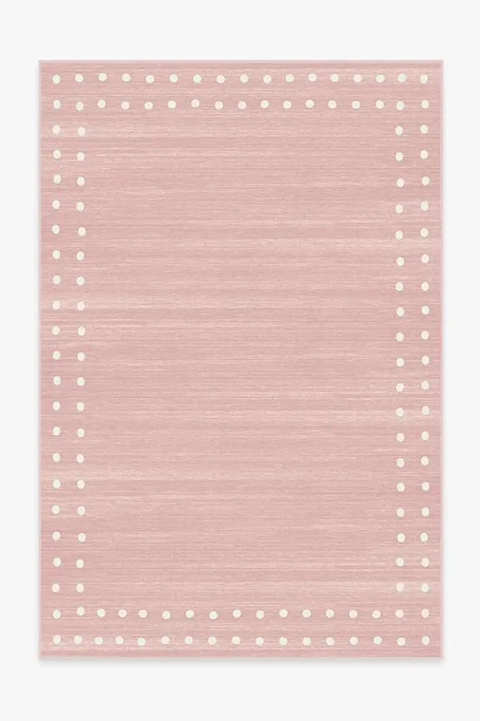 Create subtle sophistication for your child's space with our Dot Border Pink rug. Its subdued pastel pink with pearl polkadotted design will go well with a wide range of furniture styles for a bedroom, playroom or study area. This desing is perfectly suitable for kids from toddlers to tweens.