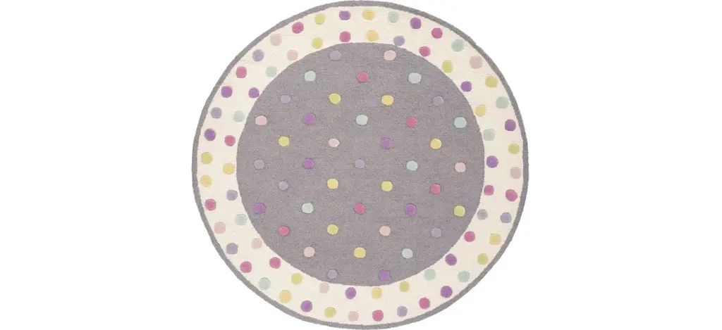 Create subtle sophistication for your child's space with our Dot Border Pink rug. Its subdued pastel pink with pearl polkadotted design will go well with a wide range of furniture styles for a bedroom, playroom or study area. This desing is perfectly suitable for kids from toddlers to tweens.