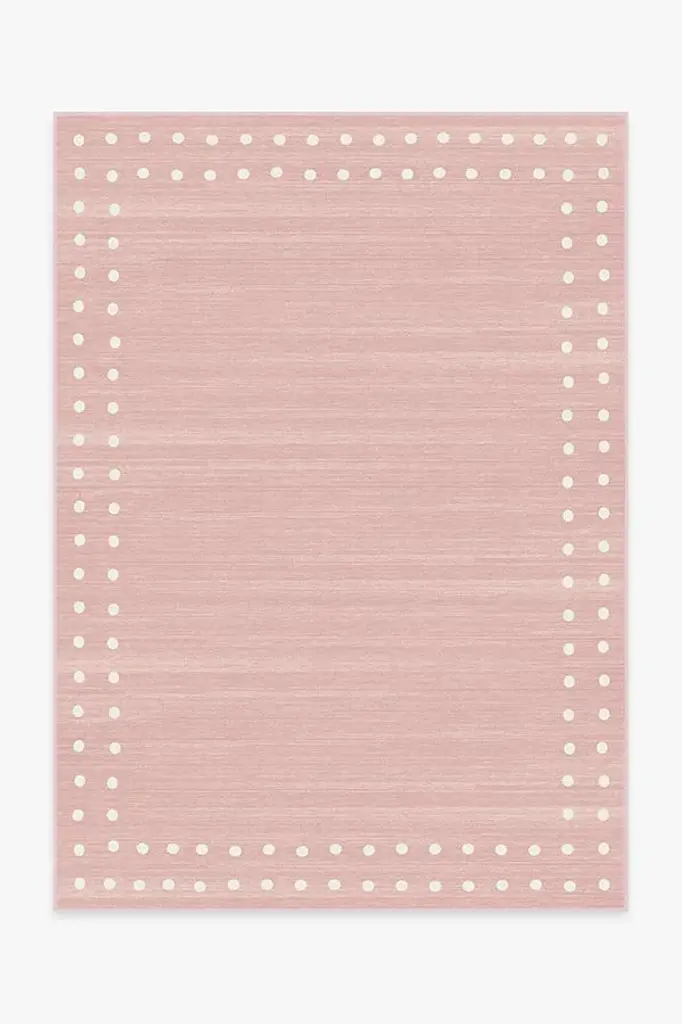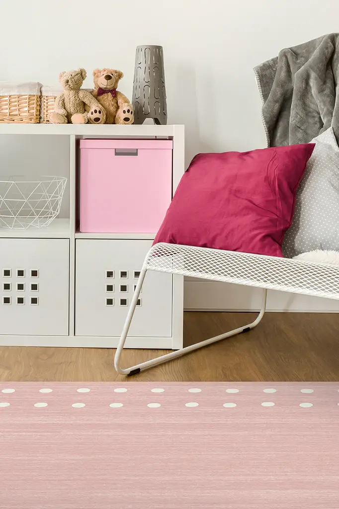 Create subtle sophistication for your child's space with our Dot Border Pink rug. Its subdued pastel pink with pearl polkadotted design will go well with a wide range of furniture styles for a bedroom, playroom or study area. This desing is perfectly suitable for kids from toddlers to tweens.