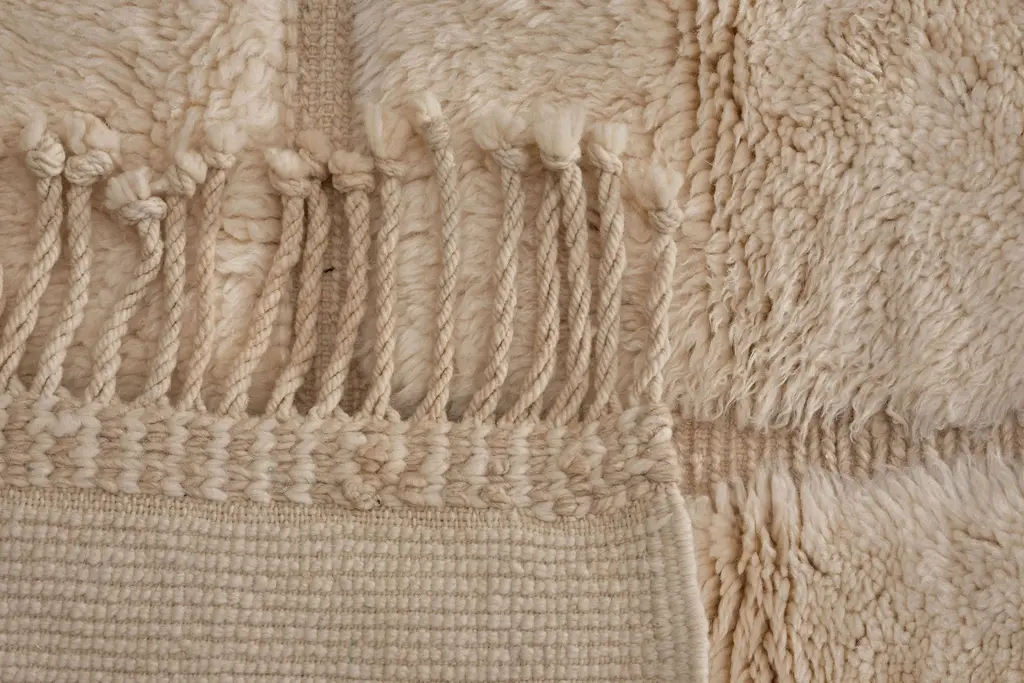 Our Moroccan pieces are each one-of-a-kind. Much of our collection was woven between 30 and 100 years ago, and curated by us. Other rugs in our collection are fresh off the loom and made with traditional techniques. Moroccan rugs don’t come with a key. As with any painting or poem, their motifs have many subjective interpretations. Originally made for personal use, these rugs took months to weave, documenting a shifting tide of events and emotions in the weaver’s life.