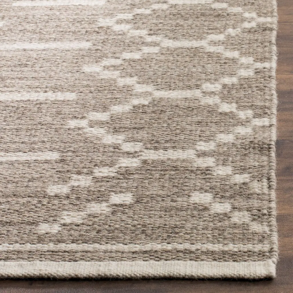 Transform your living space with the elegant charm of our hand-woven area rug, a timeless addition to any room. Crafted with precision in India, this 4' X 6' small rectangle rug sports a chic grey and ivory color palette that easily complements a range of interior designs. Featuring a height of 1/4", this exquisite piece artfully combines durability and comfort, thanks to its high-quality blend of 80% wool and 20% cotton fibers. The natural wool component ensures a soft, plush feel underfoot, while the cotton provides a touch of structure for long-lasting use. The rug pattern, depicted in the image, showcases a sophisticated geometric lattice design that brings both modernity and tradition to life in your home. The neutral hues elegantly highlight the intricate pattern, making it a versatile option for decorating your floors. From casual to formal settings, this hand-woven area rug promises to deliver not only style but also the warmth and coziness that only a finely made textile can offer. Whether it's anchoring your living room furniture or serving as a focal point in your dining area, this rug is sure to be a conversation piece for years to come.