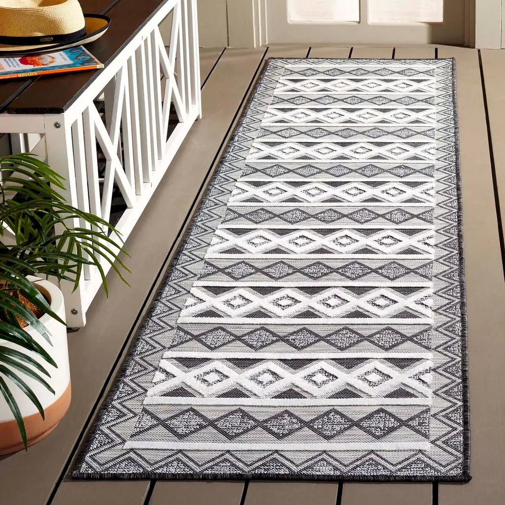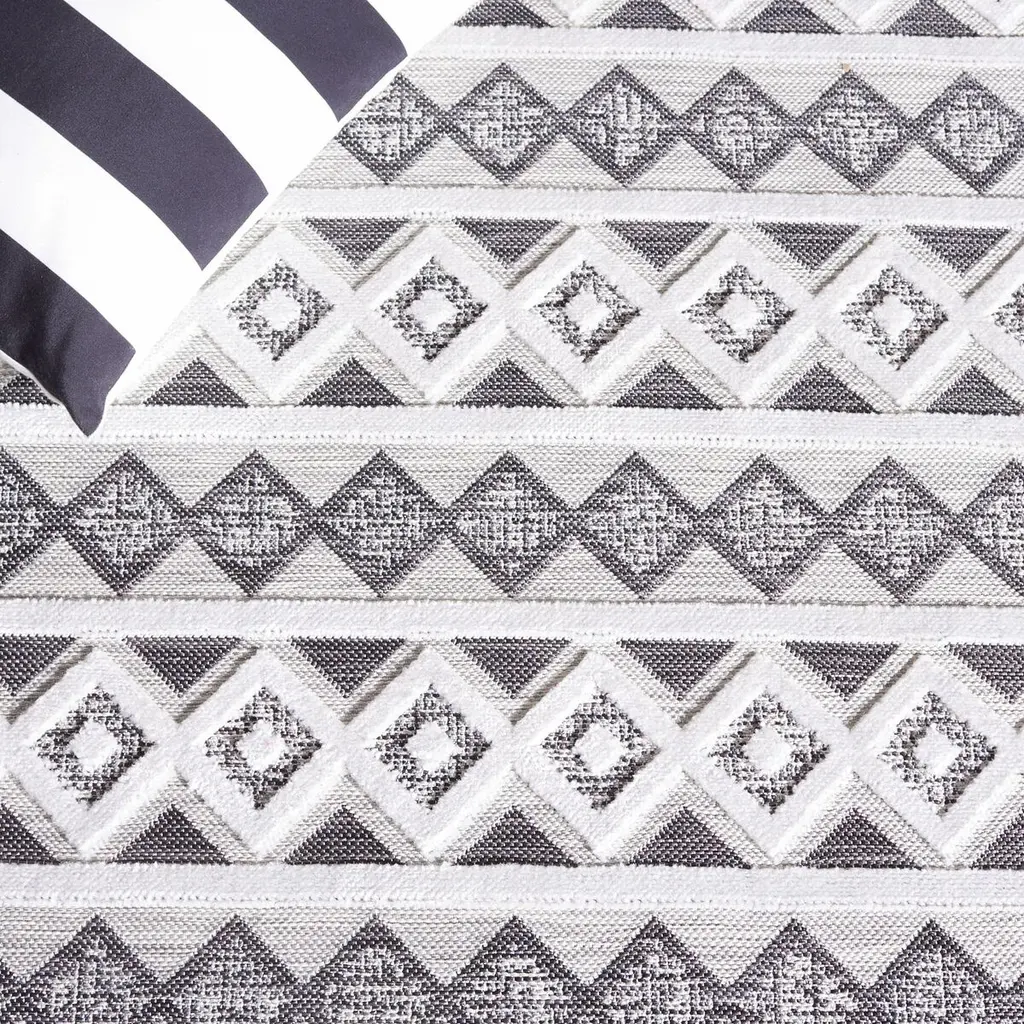 Elevate your indoor or outdoor space with our sophisticated area rug, designed with versatile style and lasting performance in mind. Crafted in Turkey, this elegant rug features a blend of 88% Polypropylene and 12% Polyester, expertly power-loomed to create a durable and easy-to-clean surface with a comfortable 3/8" pile height. The neutral tones of the rug provide a gentle palette that complements any decor, perfect for high-traffic areas or outdoor patios. The timeless geometric patterns imprinted on this rug form a harmonious sequence of motifs that add dimension and texture, giving it a chic, yet practical appeal. This rug is OEKO-TEX certified, ensuring that it's free from harmful substances and safe for any setting. Whether you’re looking to accent a hallway, define a space, or add a touch of elegance to your outdoor entertaining area, this rug blends form and function with its sophisticated pattern and resilient construction. Experience the ideal fusion of design, quality, and sustainability with our exquisitely made Indoor/Outdoor Rug.