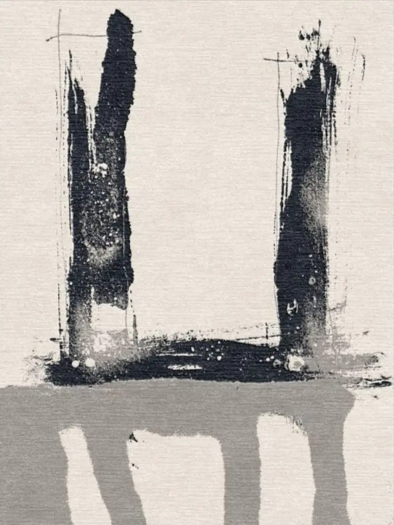 From an India ink, pencil and spray paint work, DOWNTOWN is an interpretation of the cityscape: iron bridges and graffiti, underpasses and cranes overhead. This thick wool and luxe silk rug is the enervating counterpoint to the gritty and noisy outside world of our daily lives.Hand-knotted in Nepal