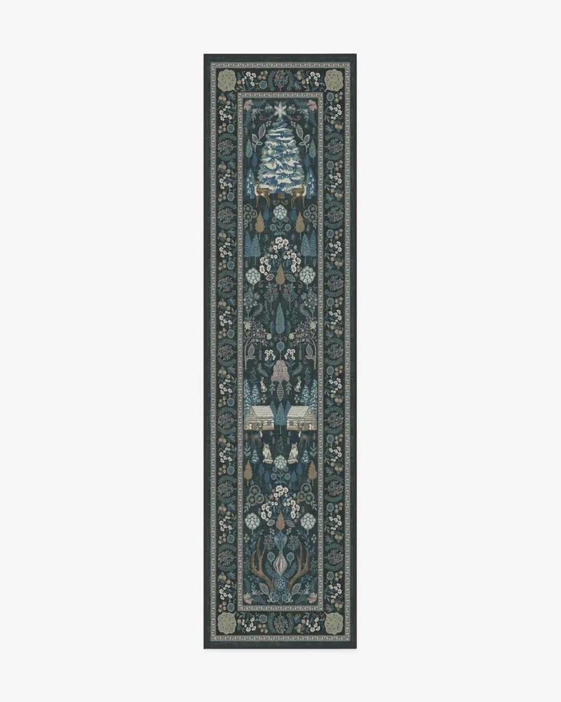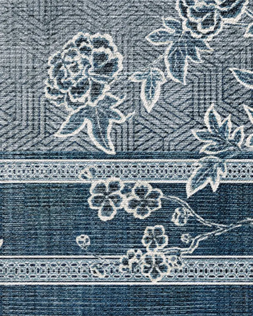 Inspired by handpainted Chinese landscape paintings, our Gracie Draper Blue Rug features bold floral and bird motifs with an antique feel. Subtle patterning appears in the border, enhancing the illusion of an infinite landscape. Its palette of deep lapis blues, silvery-slate blues, and creamy whites blend beautifully, giving the pattern a delicate quality. Water-resistant, stain-resistant, and machine-washable. Rug colors may vary slightly according to your device and the lighting in your space.