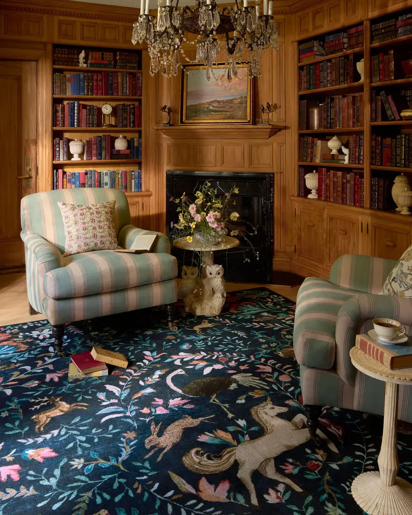 Unleash your inner unicorn with our Iris Apfel Dreamweaver Blue Multicolor Rug. Inspired by Iris' tendency to combine sophistication and fantasy, this dreamy tapestry design features whimsical flora and fauna in a plethora of azure hues. The rest of its dreamlike palette is complemented by blush pink, gold, verdigris green, cerulean blue, cream, and brown ��� all against a midnight blue background. Water-resistant, stain-resistant, and machine-washable. Rug colors may vary slightly according to your device and the lighting in your space.