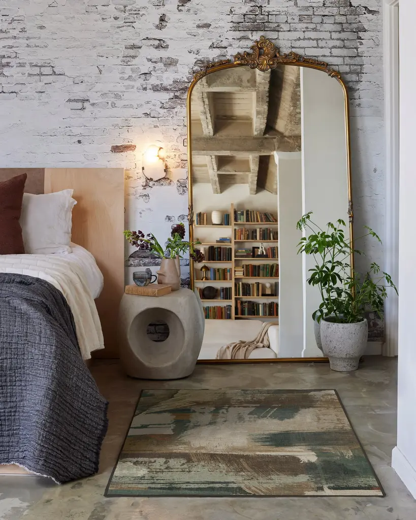 Bring home high-end design with our Architectural Digest Dresden Shadow Multicolor Rug. This industrial-inspired design features broad, painterly strokes of varying weights, engineered to create an abstract composition of movement and layering. Its balanced palette of warm and cool tones blends light creams and sages with dark teals and deep browns. Water-resistant, stain-resistant, and machine-washable. Rug colors may vary slightly according to your device and the lighting in your space.