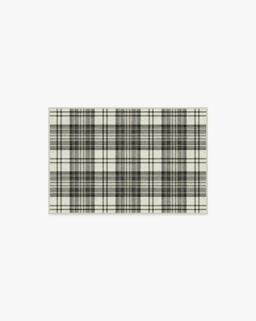 Wrap your home in warmth and holiday cheer with our Dress Stewart Tartan Black & Ivory Rug. Inspired by timeless tartan patterns, this festive plaid design features soft charcoals, deep blacks, and warm greys elegantly crisscrossing against a light ivory background. Water-resistant, stain-resistant, and machine-washable. Rug colors may vary slightly according to your device and the lighting in your space.