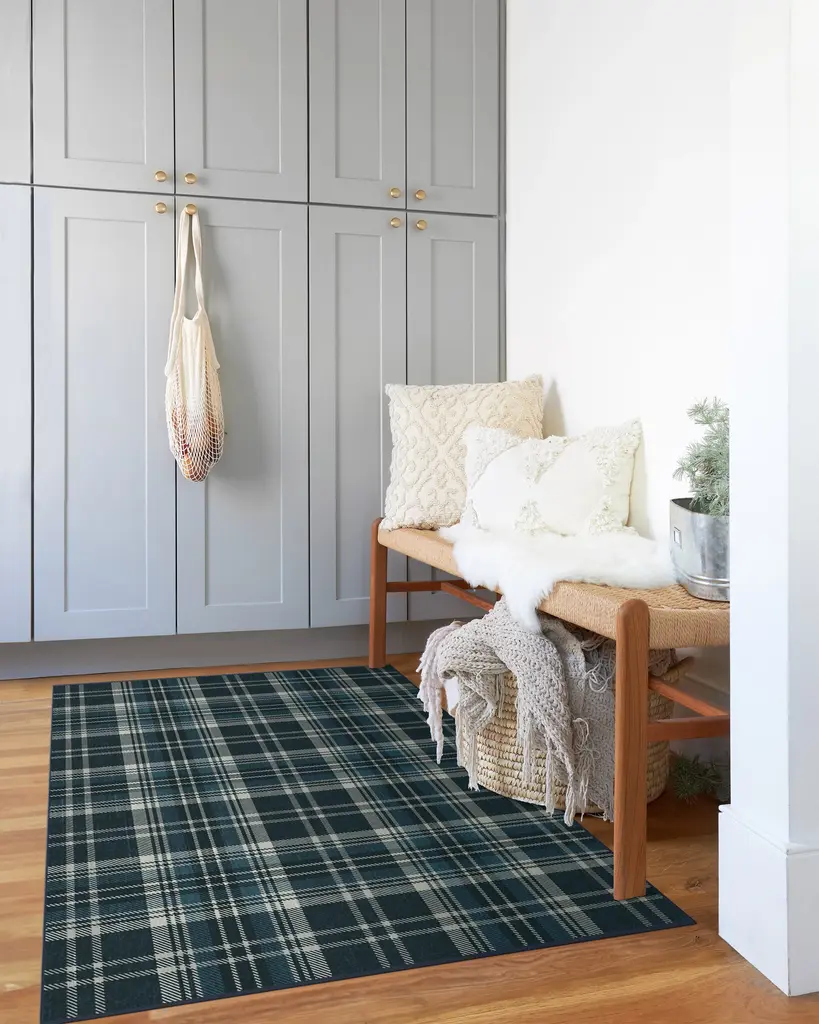 Wrap your home in warmth and holiday cheer with our Dress Stewart Tartan Navy Rug. Inspired by timeless tartan patterns, this festive plaid design features deep and soft navy tones and pops of light grey elegantly crisscrossing. Water-resistant, stain-resistant, and machine-washable. Rug colors may vary slightly according to your device and the lighting in your space.