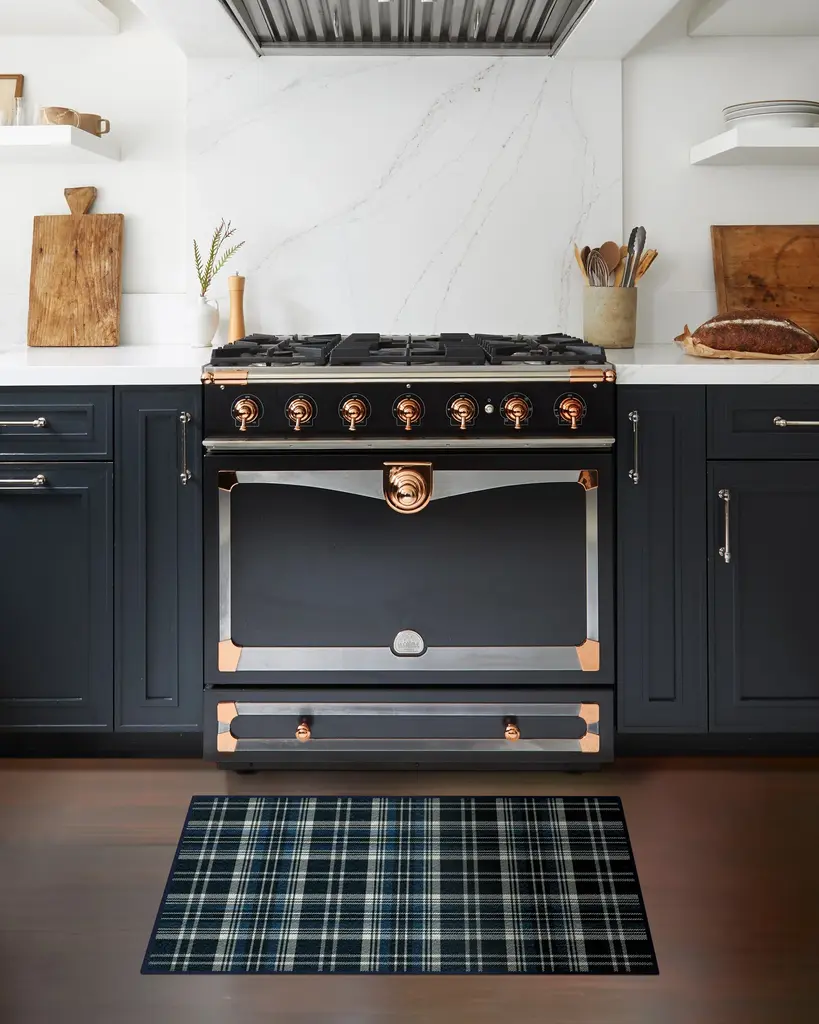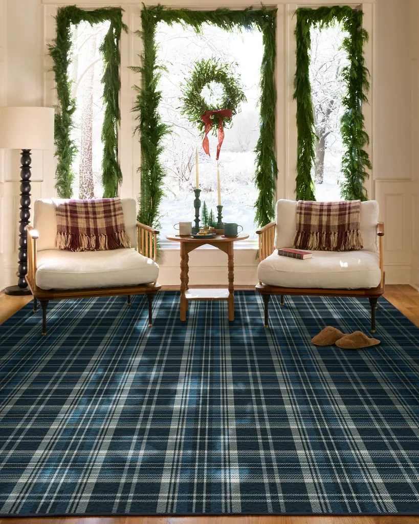 Wrap your home in warmth and holiday cheer with our Dress Stewart Tartan Navy Rug. Inspired by timeless tartan patterns, this festive plaid design features deep and soft navy tones and pops of light grey elegantly crisscrossing. Water-resistant, stain-resistant, and machine-washable. Rug colors may vary slightly according to your device and the lighting in your space.