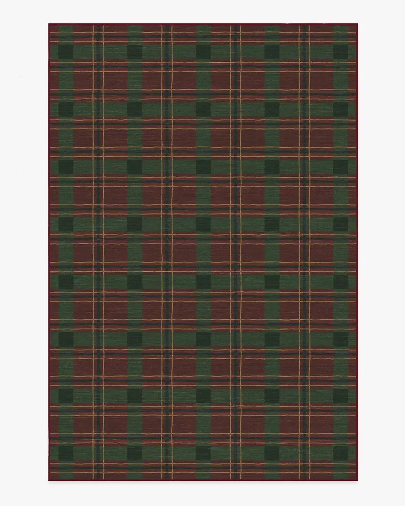 A timeless accent for your holiday home decor. Our Dress Stewart Tartan Red Rug features a vibrant poppy red background accented by leaf green and soft yellow lines for a festive color combo. Water-resistant, stain-resistant, and machine-washable.