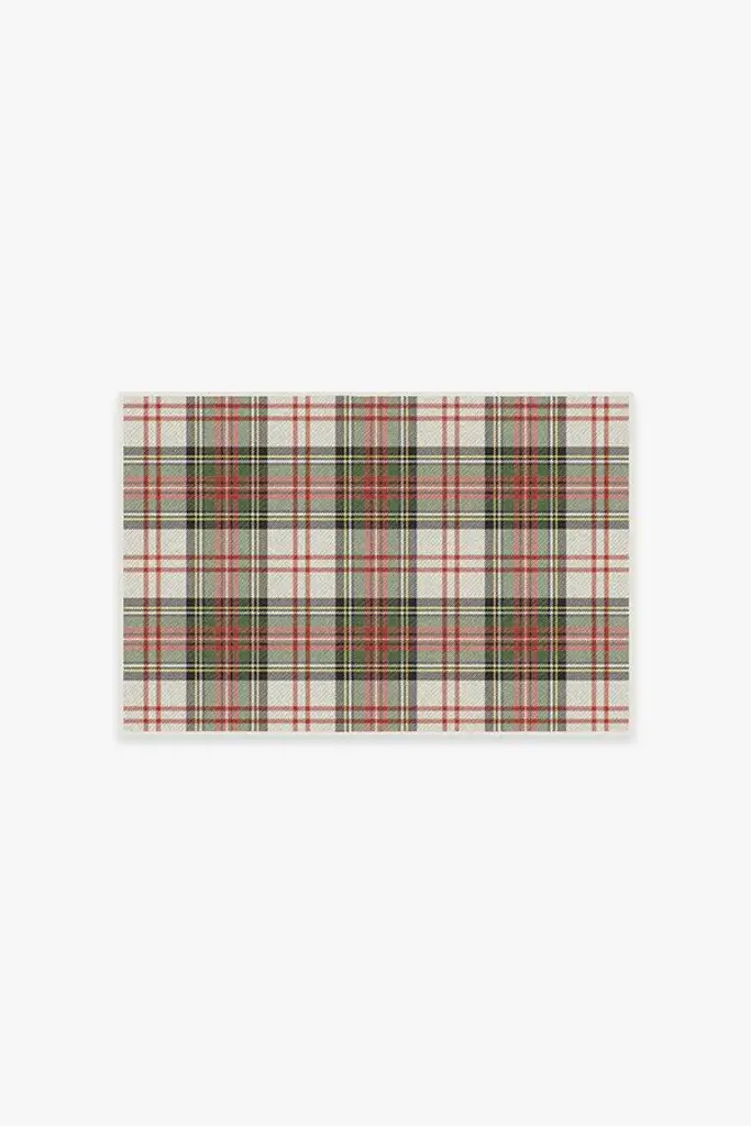 Give your home rustic charm with our Dress Stewart Tartan Rug. Tinted in classic holiday colors, this rug showcases a classic heritage plaid pattern in poppy red, dandelion yellow, and leaf green on a background of pearl.
