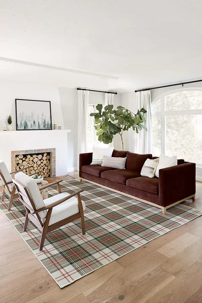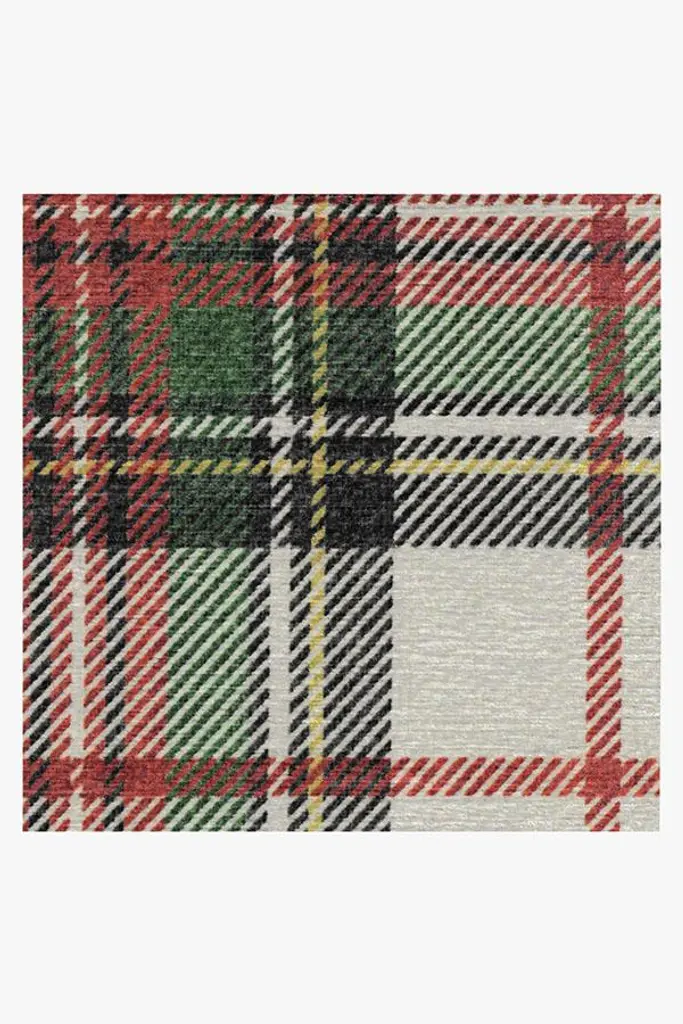 Give your home rustic charm with our Dress Stewart Tartan Rug. Tinted in classic holiday colors, this rug showcases a classic heritage plaid pattern in poppy red, dandelion yellow, and leaf green on a background of pearl.