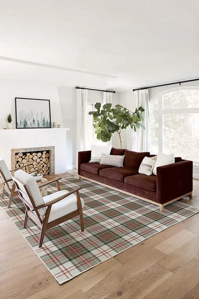 Give your home rustic charm with our Dress Stewart Tartan Rug. Tinted in classic holiday colors, this rug showcases a classic heritage plaid pattern in poppy red, dandelion yellow, and leaf green on a background of pearl. Made from our water-resistant, stain-resistant, and machine-washable low-pile Chenille material.