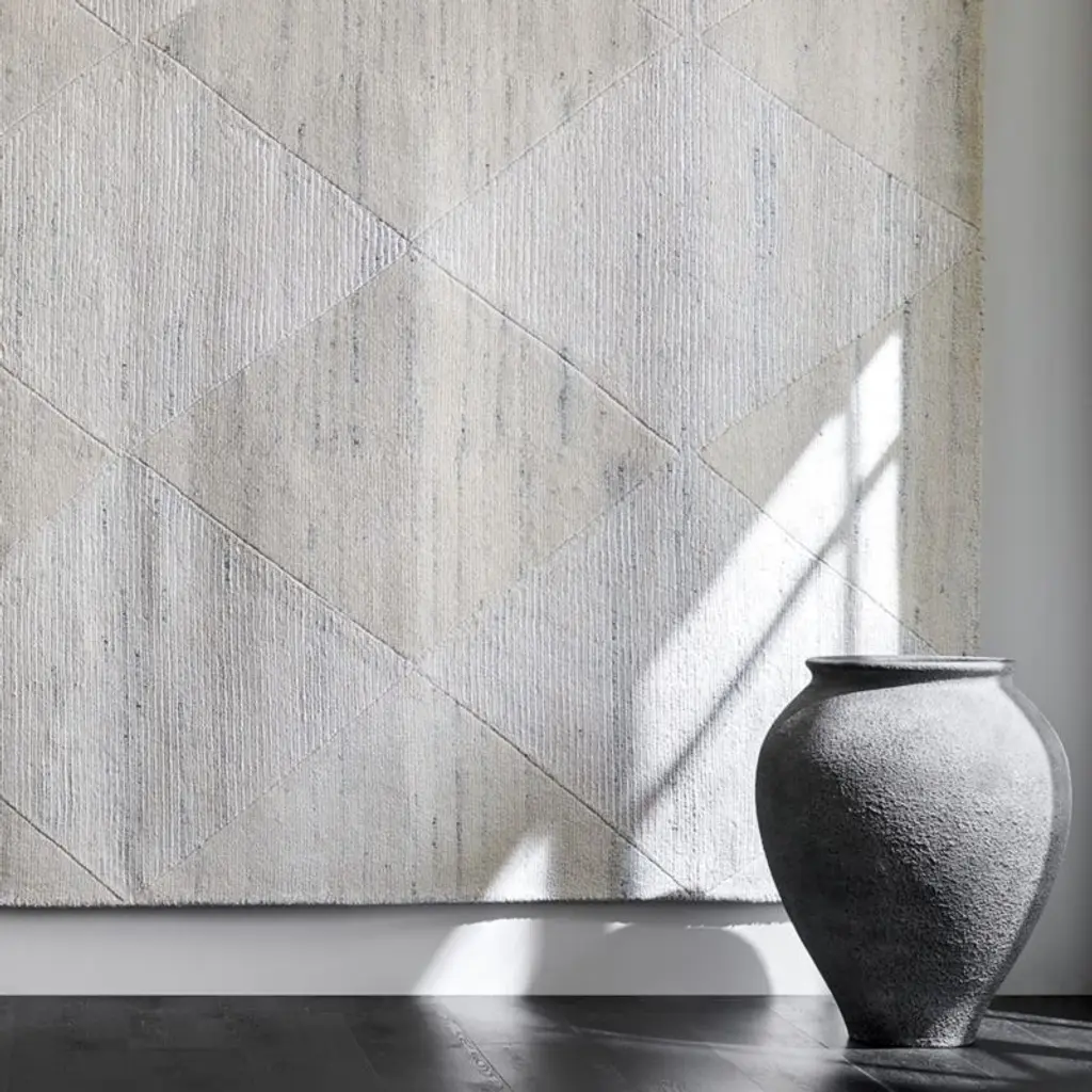 Dreux scales up the classic harlequin motif to layer the room with modern pattern and a mix of textures. The graphic design alternates diamonds made of a chunky wool-blend yarn with those crafted of lustrous viscous, all in nuanced tones of ivory. The variations in hue enhance the artisan appeal of the hand-knotted rug, while the lush pile feels wonderful underfoot. Classic yet contemporary, the wool-blend area rug lays a sophisticated foundation for the medium-traffic living or dining room.Try it on first. Because color representation may vary by screen, using a swatch is an easy way to see exactly how your favorite rugs will look in your home. Our rug swatches ship free and can be returned online or at any store for a full refund.6'x9' rugs and 8'x10' rugs can be ordered online and picked up in a store near you. It's fast, easy and free.For larger rugs, order online and arrange a convenient delivery or warehouse pickup.