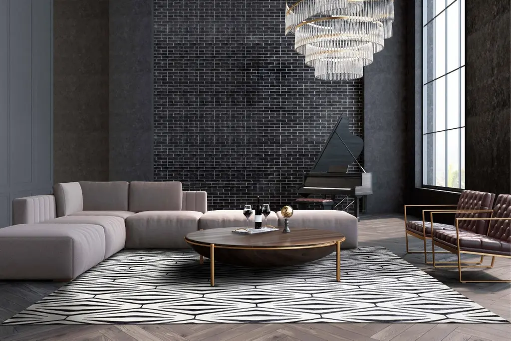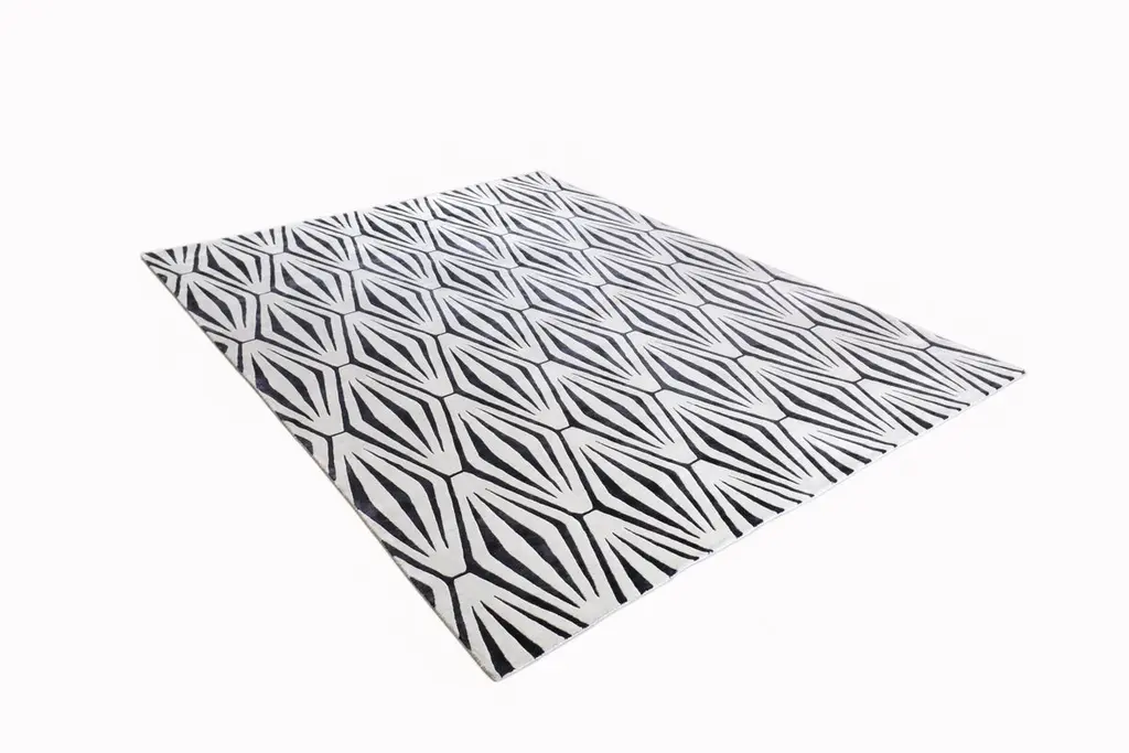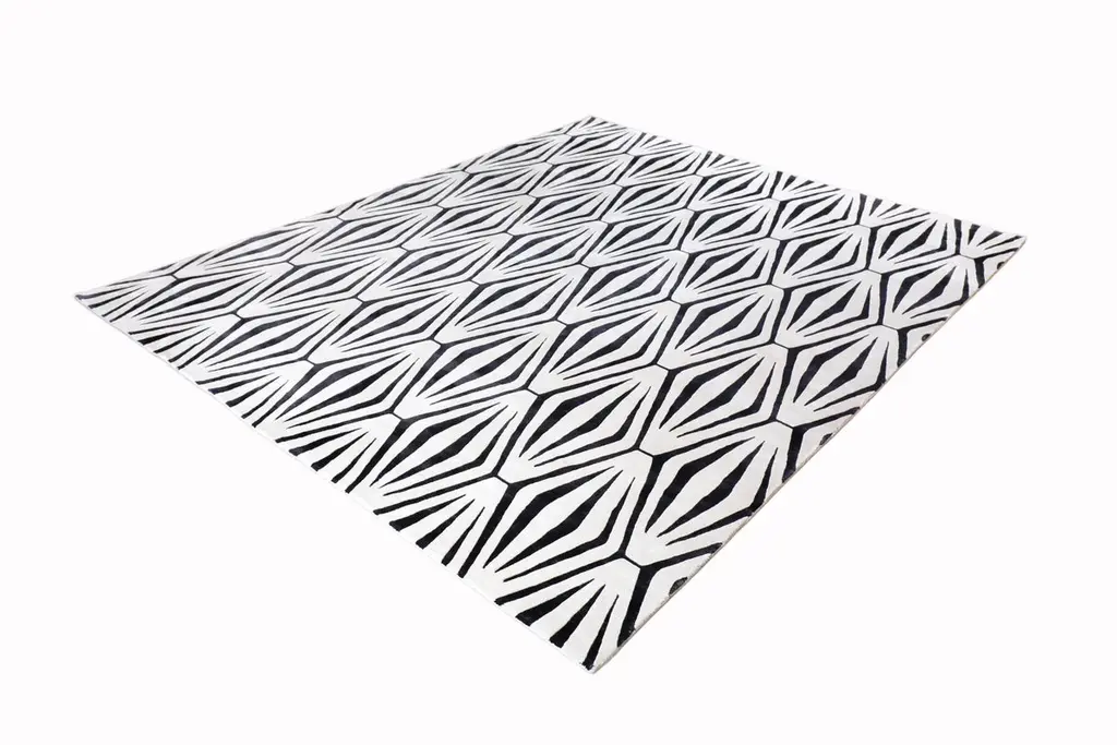 Dual Hand Knotted Modern Geometric Silk Rug In Black & White Colour By Hands