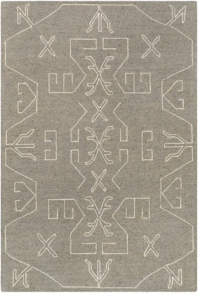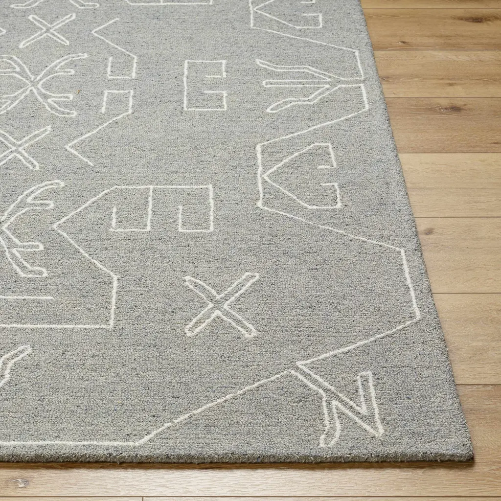 Collection: Duard Colors: Light Gray, Taupe, Gray, Dark Brown, Medium Gray Construction: Hand Tufted Material: 100% Wool Pile: Medium Pile Pile Height: 0.24" Styles: Transitional,Bohemian Backing: Canvas Made In: India Thickness: 0.39" Price Range: $$$$$ (Affordable)