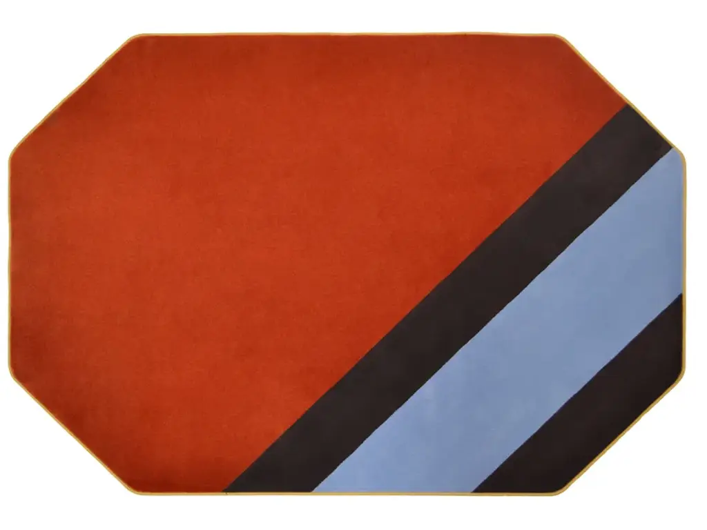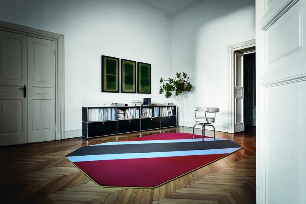 A distinctive pattern of diagonal sections with a strong character – available in two combinations – recalls menswear graphics.The Ducale carpet series is an evolution of the textile covering created by Besana Carpet Lab and Cristina Celestino for Tram Corallo, a project presented at the 2018 Milan Design Week: the refined tailormade carpeting that, in line with the designer’s vision, adorned the historic vehicle now turns into a collection of fully customizable carpets, where once again impeccable craftsmanship meets style.Ducale comprises three types of carpets with a unique personality: each version, featuring different sizes and manufacturing techniques, is characterized by an inspired blend of carpeting inserts, creating fine contrasts of colors and materials. Carpet edges and diagonal sections are embellished with golden yellow stitching, evoking the precious world of jewelry.Thanks to the company’s great expertise and to the design’s versatility, the collection is completely customizable, in all its aspects, from the selection of colors and types of carpeting up to the arrangement of the geometric motif.Carpeting typesDucale carpets may be customized by choosing among four types of carpetin inserts, to give life to new, unique combinations of different thicknesses and textures.The Ducale carpet collection draws inspiration from men’s cufflinks, elegant accessories that have always been subject to original reinterpretations: their fine geometries and regimental graphics are now revisited as precious wall-to-wall carpeting inlays of various kinds, giving life to an eclectic mix of textures, thicknesses, and colors — all skillfully hand — assembled by Besana Carpet Lab.