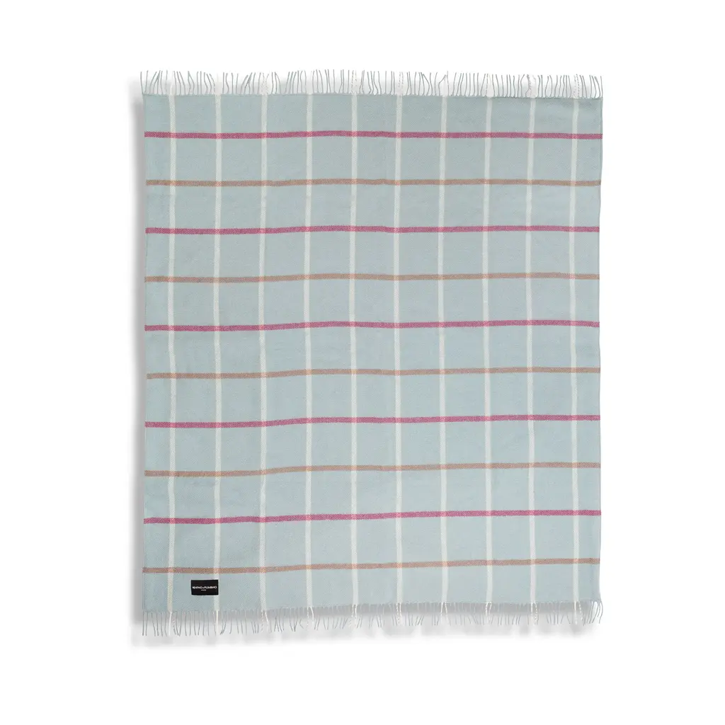Duck Egg Checked Pure New Wool Picnic Blanket With Long White Strap