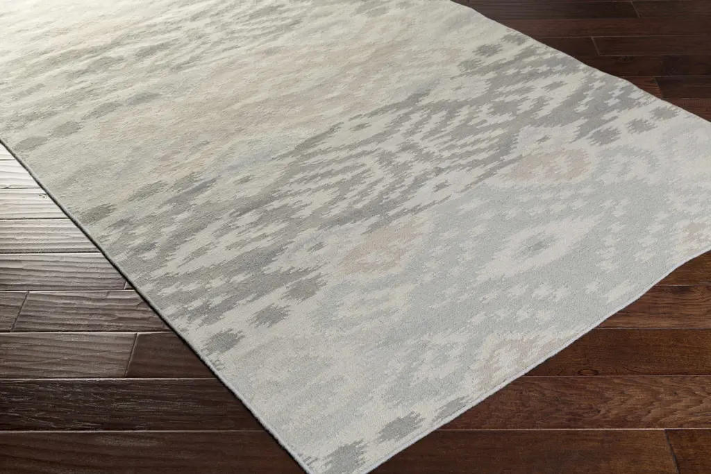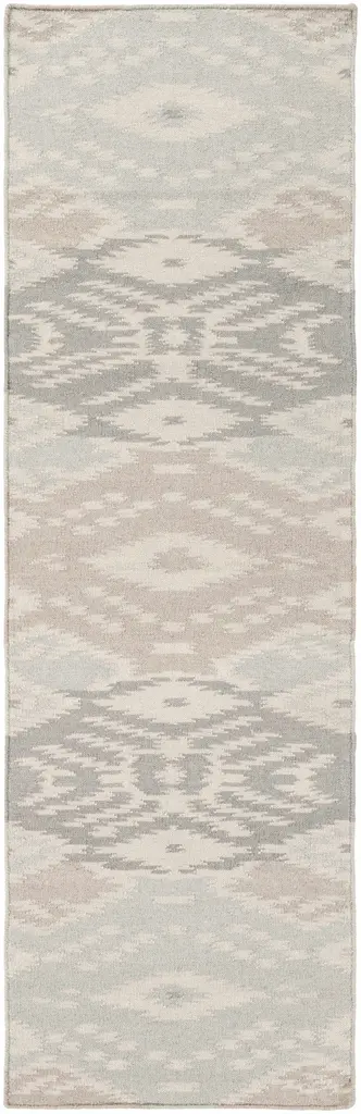 Collection: Ducor Colors: Light Gray, Gray, Slate Blue Construction: Hand Woven Material: 100% Wool Pile: No Pile Styles: Bohemian/Global Made In: India Thickness: 0.16" Price Range: $$$$$ (Affordable)