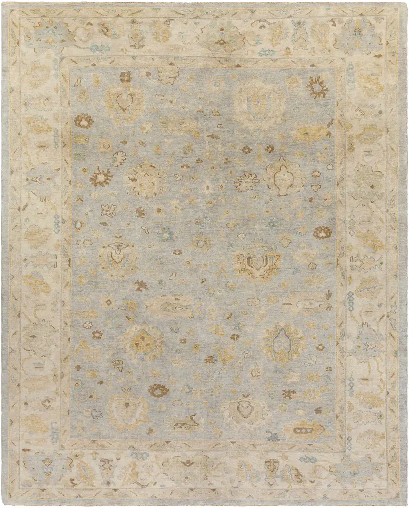 Collection: Dunipace Colors: Beige, Blue, Medium Brown, Pale Blue, Taupe, Medium Gray Construction: Hand Knotted Material: 100% Wool Pile: Medium Pile Pile Height: 0.23" Styles: Traditional Made In: India Thickness: 0.31" Fringe Length: 0.5" Price Range: $$$$$ (Premium)
