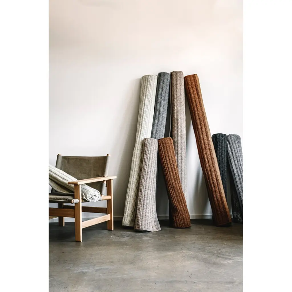 VM Carpet's Haiku rug features a delightfully tranquil monochromatic pattern made up of woven stripes on its surface alternating rhythmically. The poetic, beautifully minimalist wool rug is sure to add coziness and warmth to any space, imbuing it with a sense of serenity and calm. The Haiku rug is part of VM Carpet's Duo collection, designed by Finnish textile artist Elina Helenius. The collection is characterized by timeless design, sustainability and multifunctionality, to which the collection’s name also refers: the easy-care rugs are double-sided, meaning they can be used both ways. The Duo rugs are made at VM Carpet's own weaving mill in the village of Karvala in Finland.