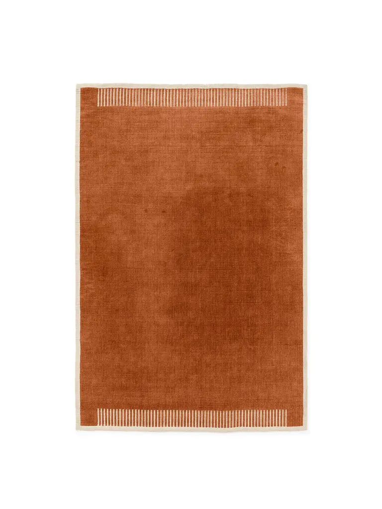 With its luxe cut loop pile, soft and comfortable under foot, the Duomo Rug fuses classical inspiration with contemporary design, paying tribute to architecture. The understated composition of the timeless design weaves together a sense of refinement in wool, detailed with stripes that draw the eye and frame the design. Available in three colors – Limestone Beige, Marble Grey and Terracotta Red, the latter a poignant reference to the iconic red facade of Audo House – and a square or rectangular shape.