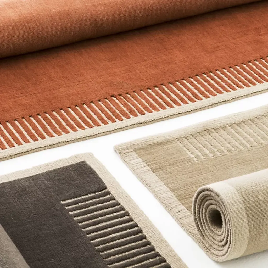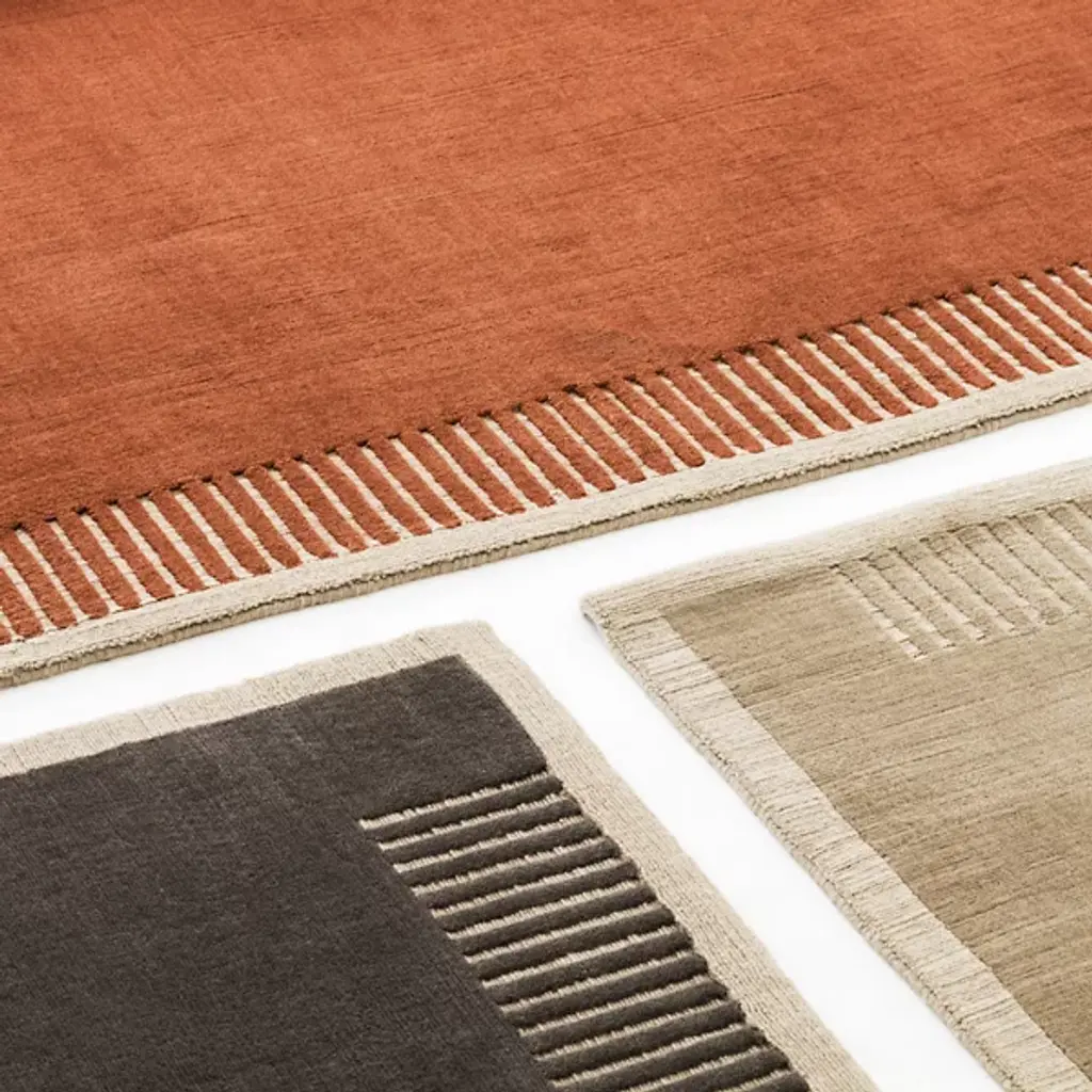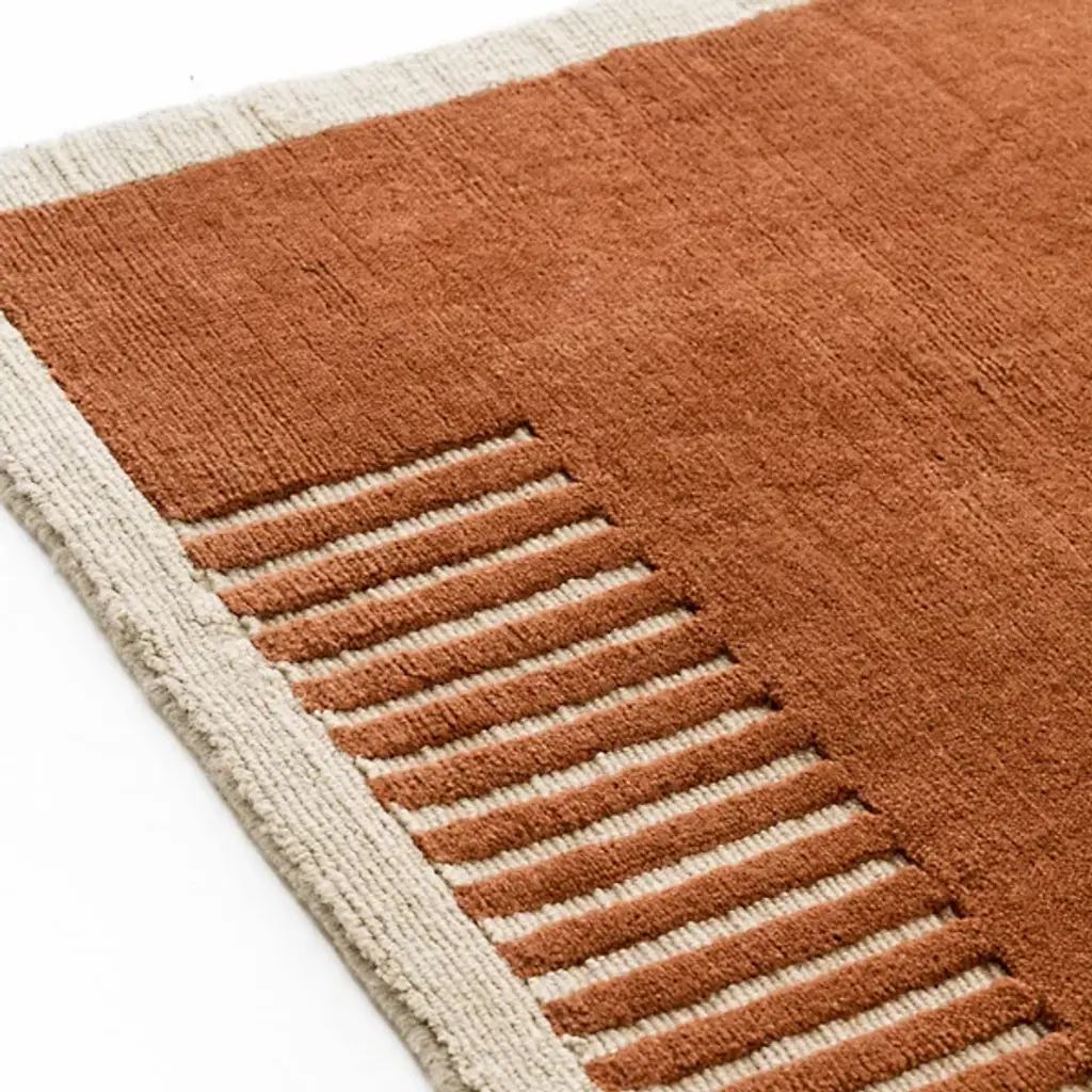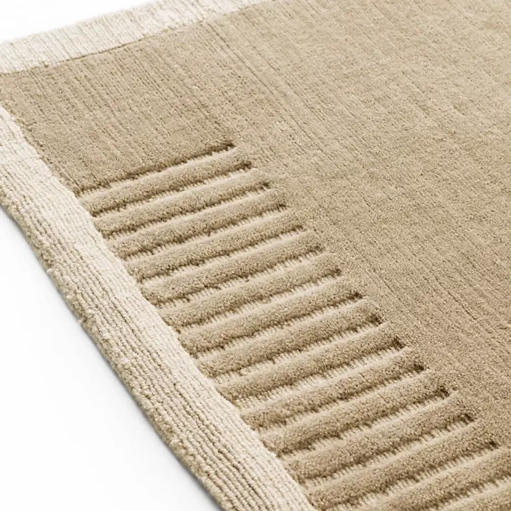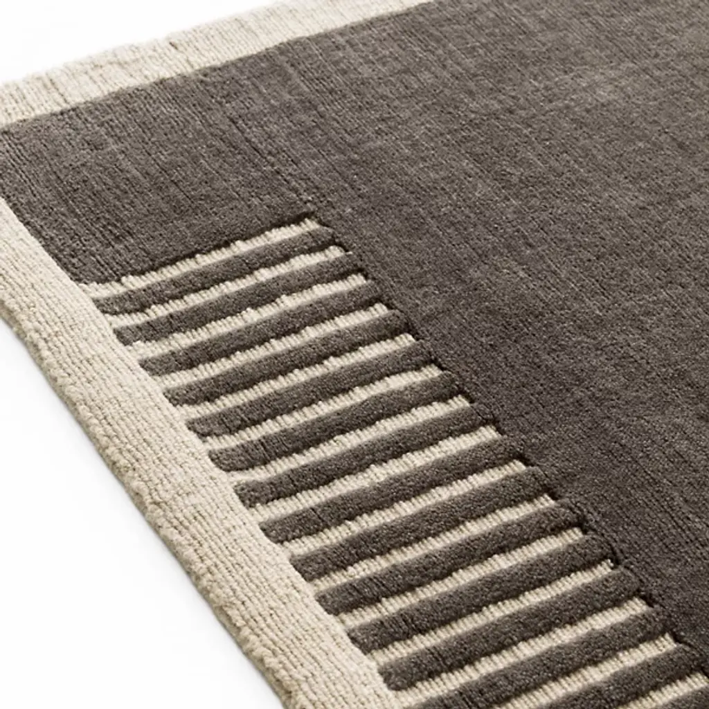 Provide an extra layer of comfort to indoor spaces with the casual contemporary appeal of the Duomo Rug from Audo Copenhagen. A mix of Scandinavian simplicity and rustic modern design, each rug is hand-woven in Sweeded from a wool-cotton mix, placing a darker central color inside a slender, pale frame along its outer edge. The rug is both soft and strong, further enhanced by bar accents along the sides of the rug that provide an extra pop of visual contrast and texture.
