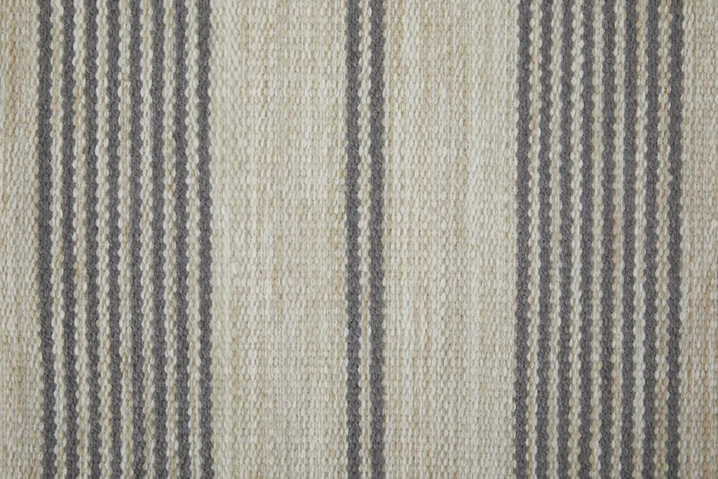 Collection: Duprine Colors: Gray, Ivory Construction: Hand Woven Material: Face: PET, Polyester Pile: Low Pile Pile Height: 0.16" Styles: Transitional,Casual,Nautical & Coastal Backing: N/A Made In: India Thickness: 0.16" Price Range: $$$$$ (Affordable)