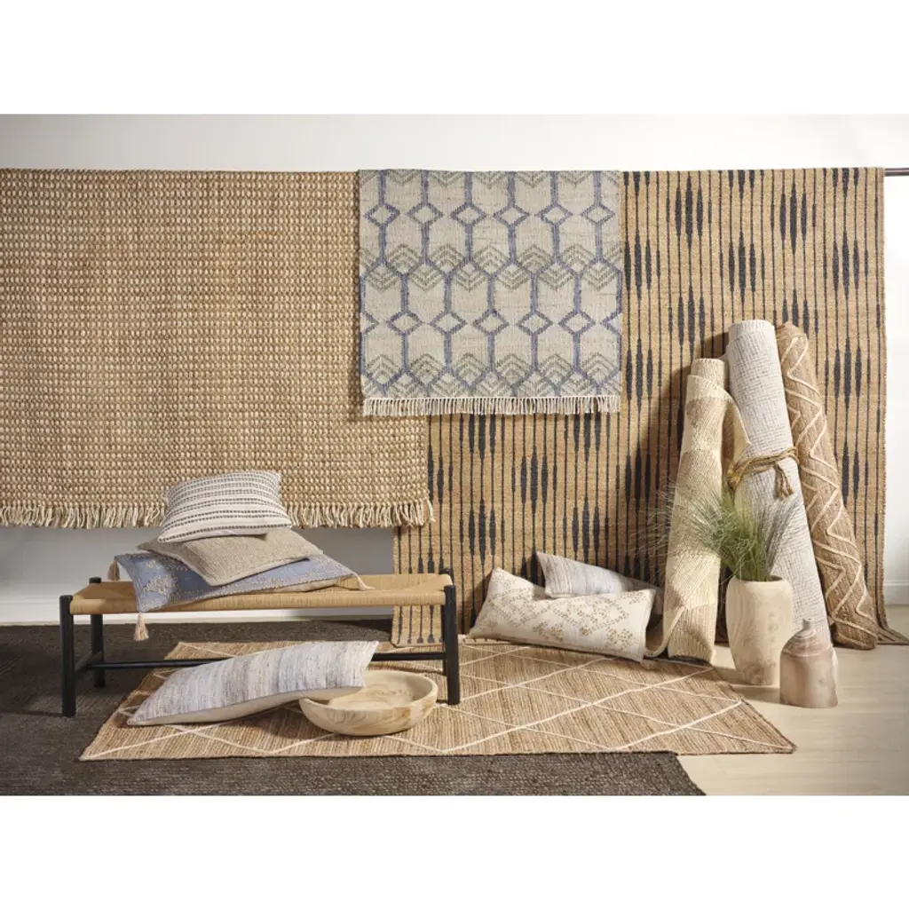 Elevate your home with this hand-loomed jute area rug, offering a touch of natural texture to any space. Its high-low pile creates a subtle yet eye-catching pattern, while the fringe adds a hint of boho flair. Ideal for both residential and professional settings, this rug is floor heating safe and stain-resistant, making it a versatile choice for high-traffic areas. Just remember to vacuum with no beater bar and spot clean with a dry cloth to keep it looking fresh. Note: A non-slip backing is not included, so consider adding one for extra safety.