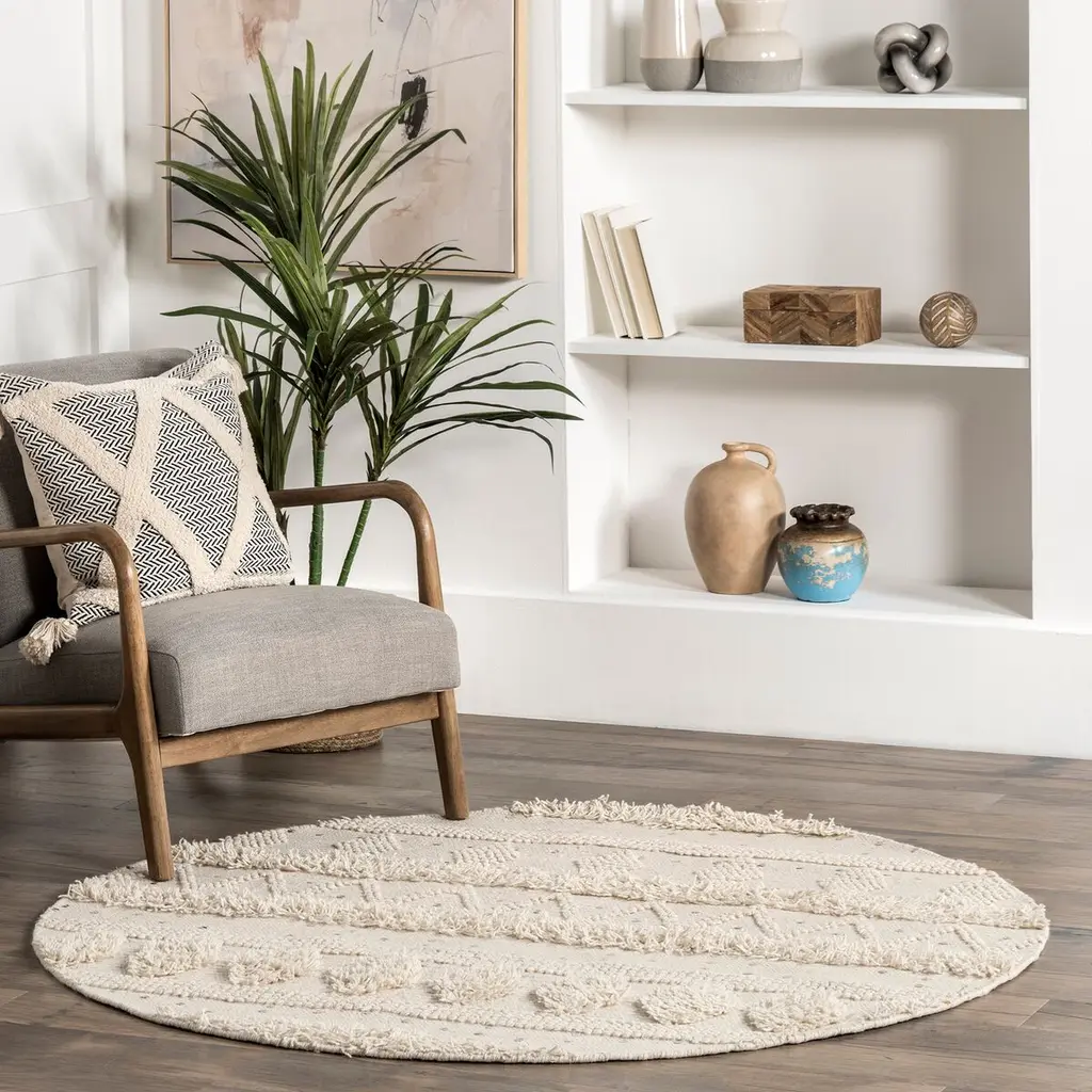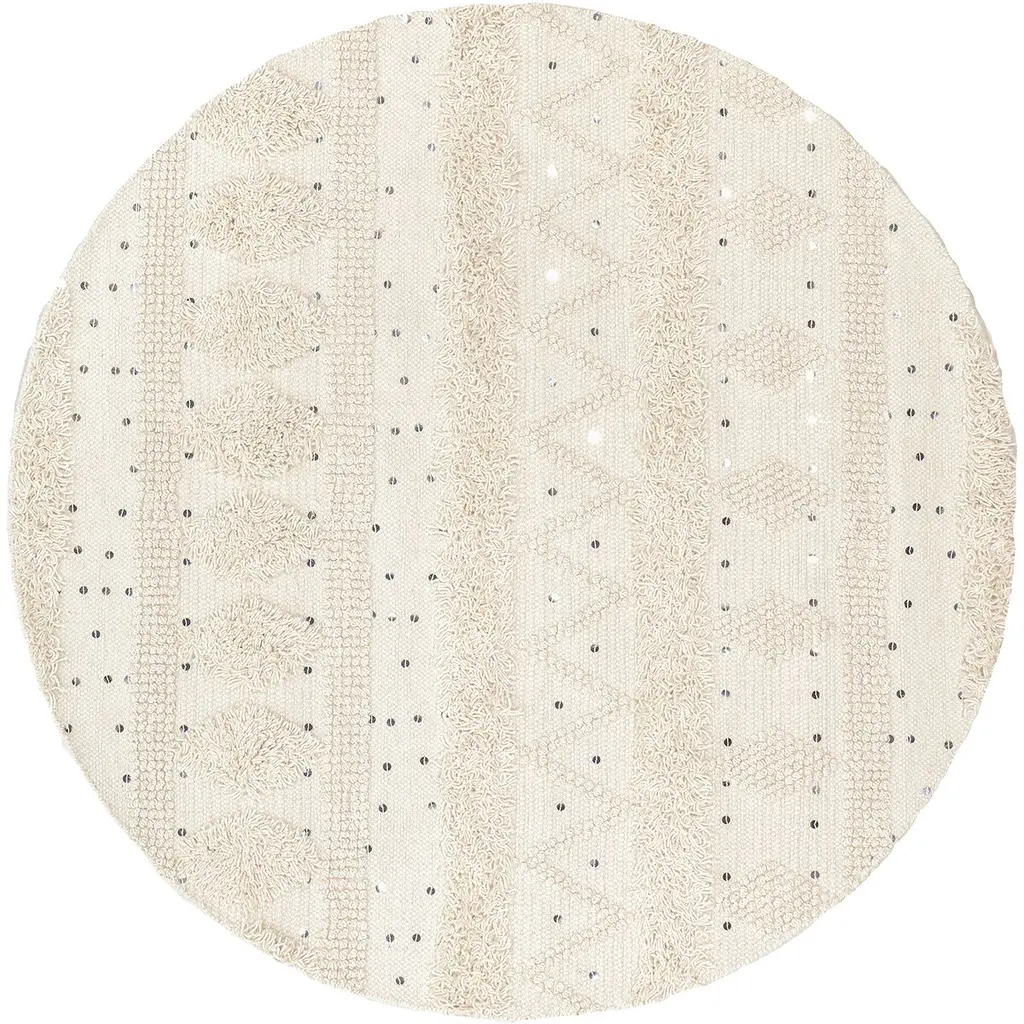 The detail! Featuring a blend of high-low shaggy pile, hand-tufted motifs, and decorative sequins, the Chandy Rug has texture for days. Its eclectic design is sure to add some bohemian flair to your space, while also keeping things low-key thanks to its neutral hue. Made of 100% wool, this rug is super soft underfoot, too, while being unique to your home due to its handmade nature. Create the home you've always dreamed of with our gorgeous area rugs!