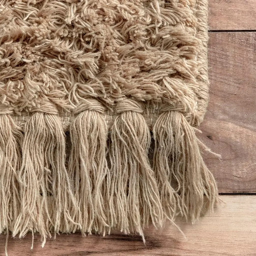 The detail! Featuring a blend of high-low shaggy pile, hand-tufted motifs, and decorative sequins, the Chandy Rug has texture for days. Its eclectic design is sure to add some bohemian flair to your space, while also keeping things low-key thanks to its neutral hue. Made of 100% wool, this rug is super soft underfoot, too, while being unique to your home due to its handmade nature. Create the home you've always dreamed of with our gorgeous area rugs!