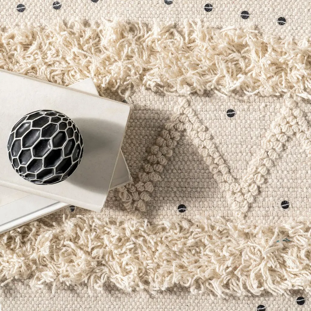 The detail! Featuring a blend of high-low shaggy pile, hand-tufted motifs, and decorative sequins, the Chandy Rug has texture for days. Its eclectic design is sure to add some bohemian flair to your space, while also keeping things low-key thanks to its neutral hue. Made of 100% wool, this rug is super soft underfoot, too, while being unique to your home due to its handmade nature. Create the home you've always dreamed of with our gorgeous area rugs!