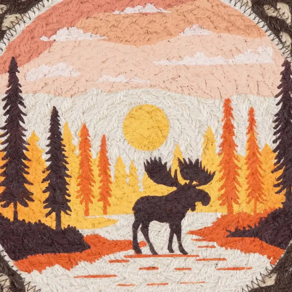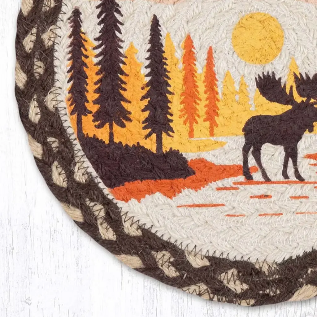 Earth Rugs 10" Rustic Moose Trivet – Suzanne Pienta Wildlife Art On Braided Jute