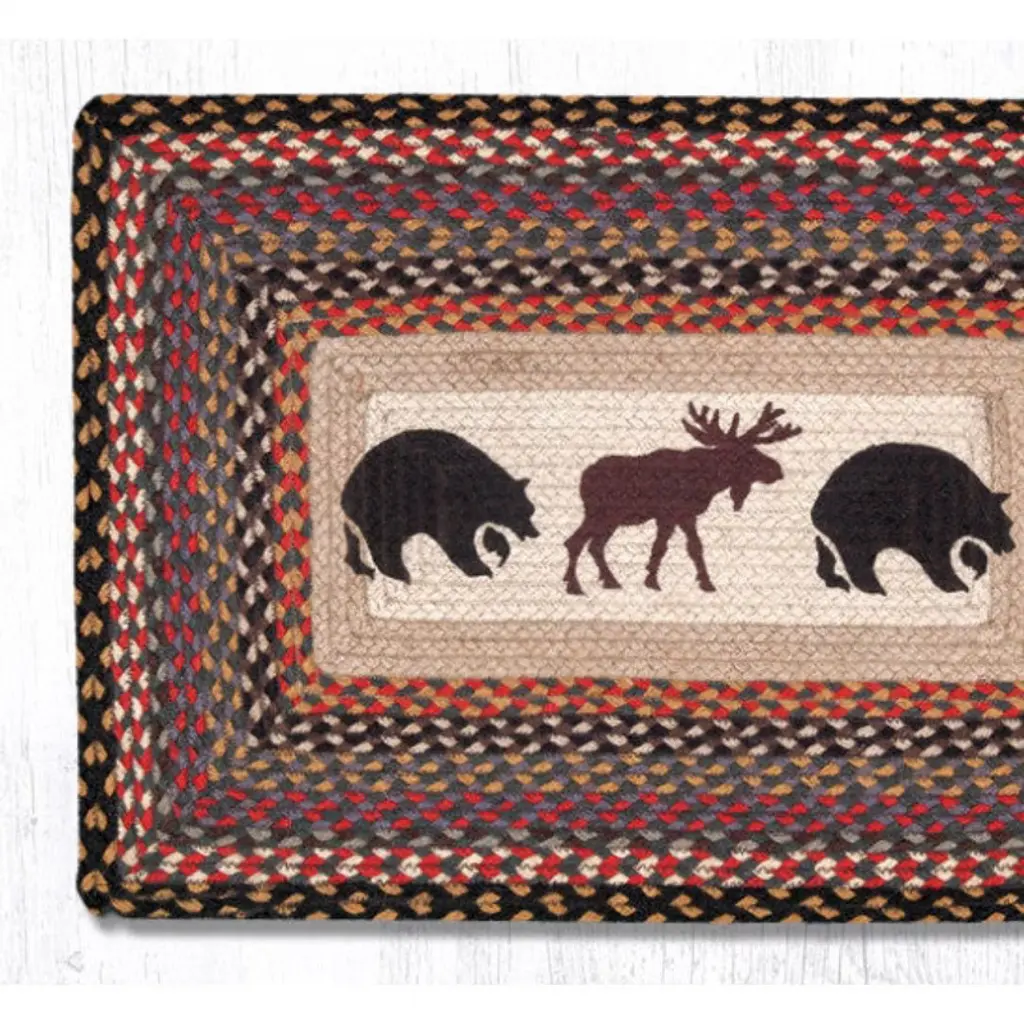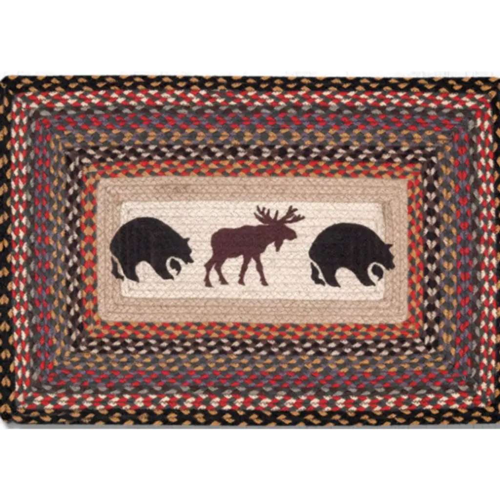 Earth Rugs Bear And Moose Oblong Jute Tread – 20"x30" Rustic Hand-stenciled Patch Design
