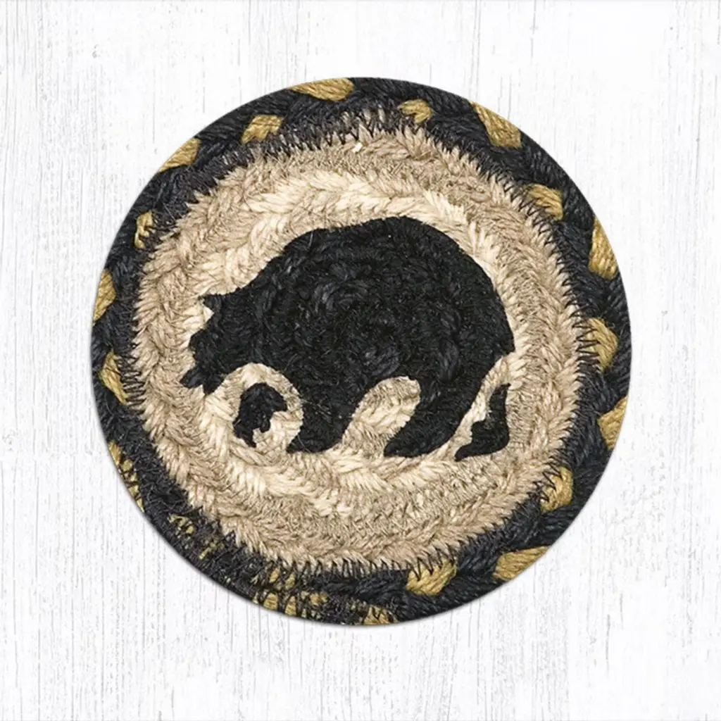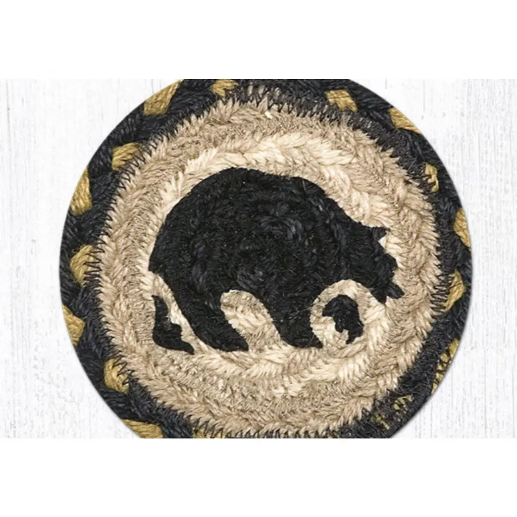 Earth Rugs Bear Printed Coaster – 5"x5" Rustic Cabin Decor With Braided Jute And Nature-inspired Wildlife Design