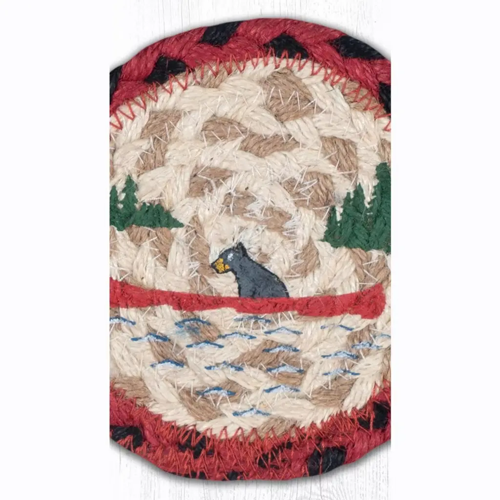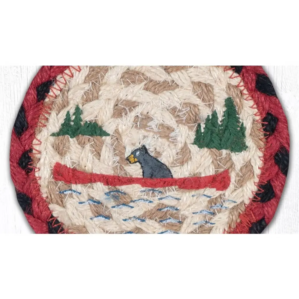 Bring the outdoors inside with the Earth Rugs Bears in Canoe Printed Coaster. Measuring 5"x5", this handcrafted jute coaster features a charming wildlife design of bears in a canoe — the perfect rustic touch for cabin retreats, lodges, or lodge-inspired homes. Key Features: Protect your furniture with this rustic Bears in Canoe Printed Coaster (5"x5"). Made from natural jute, offering eco-friendly durability and timeless charm. Hand-stitched craftsmanship ensures long-lasting strength and quality. Scenic bear canoe design adds rustic lodge and nature-inspired character.Perfect for cabins, lodges, rustic kitchens, and wildlife enthusiasts. Lightweight yet sturdy, ideal for daily use or gifting. Easy care — spot clean with mild soap and water.