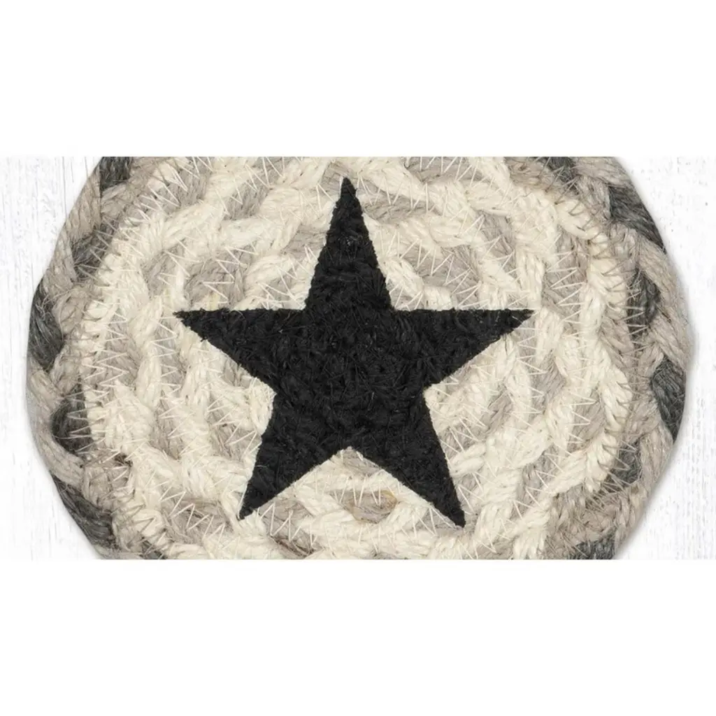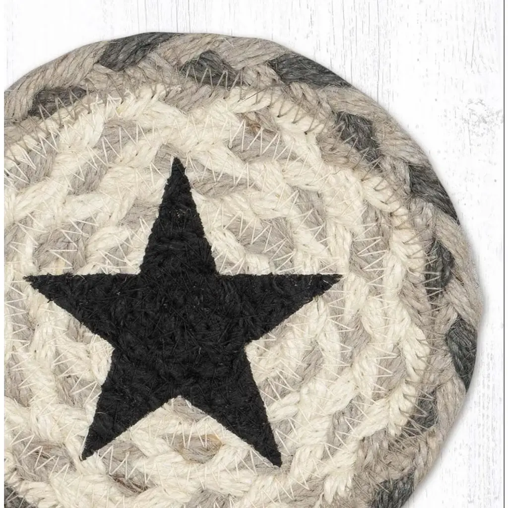 Earth Rugs Black Star Round Coaster – Braided Jute, Minimalist Rustic Design, 5"x5"