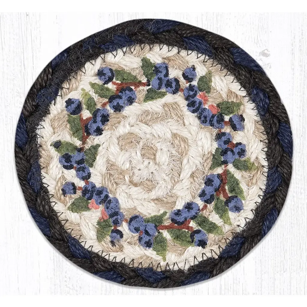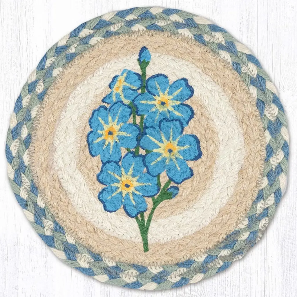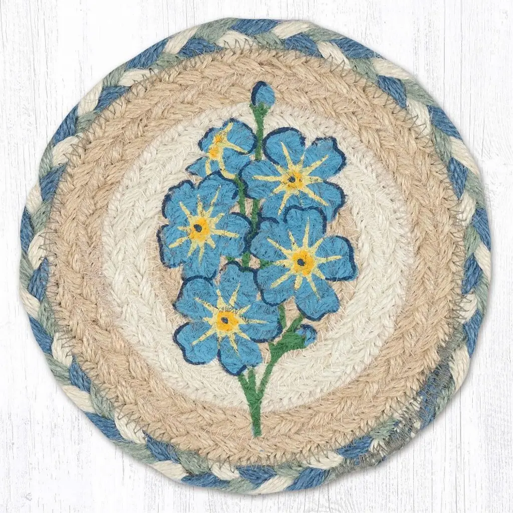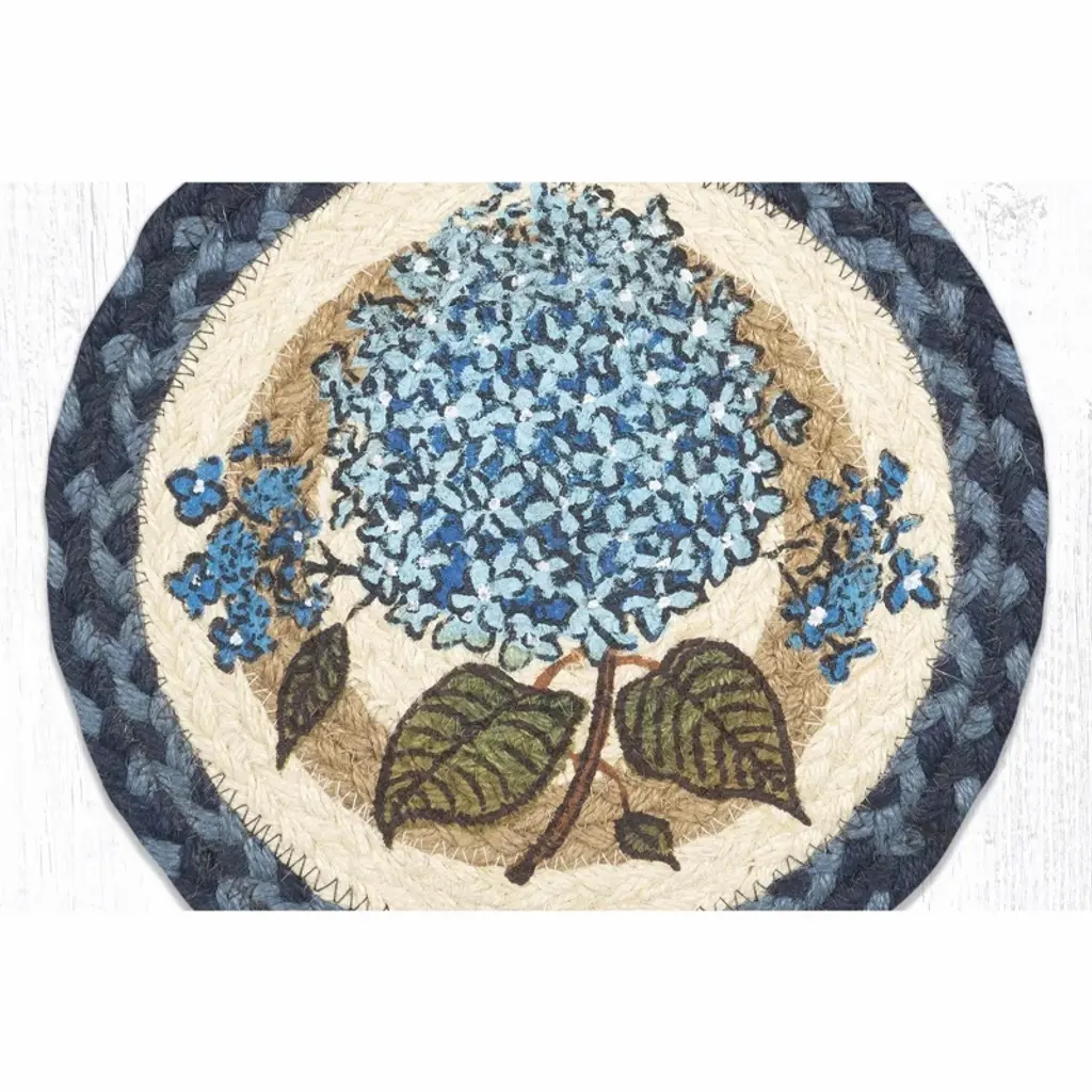 Earth Rugs Blue Hydrangea Round Trivet – 10" Floral Print On Natural Braided Jute Mat