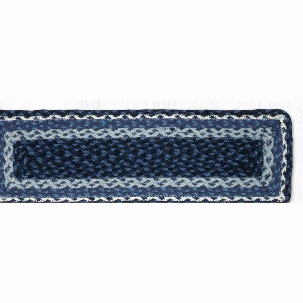 Earth Rugs Blue/gray/ivory Rectangle Stair Tread – Braided Jute 27"x8.25"