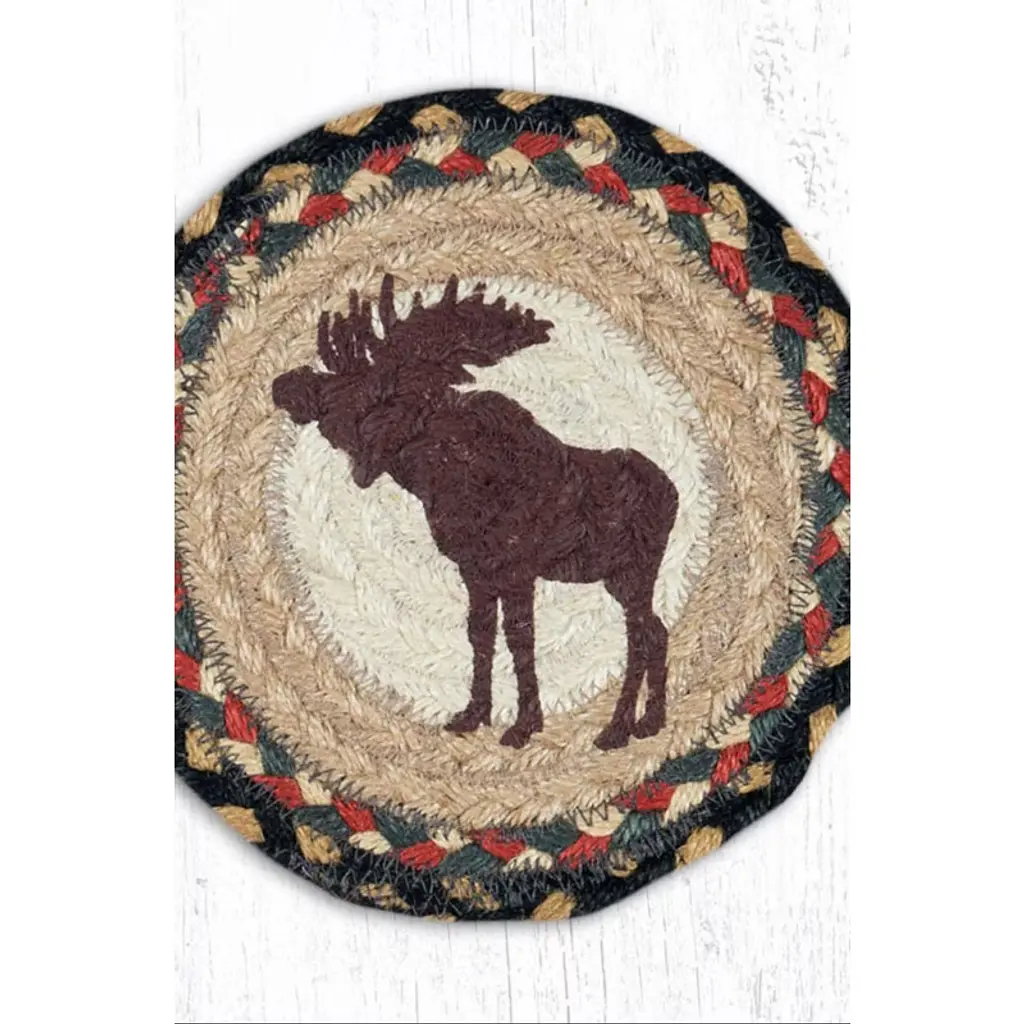 Earth Rugs Bull Moose Round Braided Jute Coaster – 7"x7" Hand-stenciled Rustic Lodge Accent