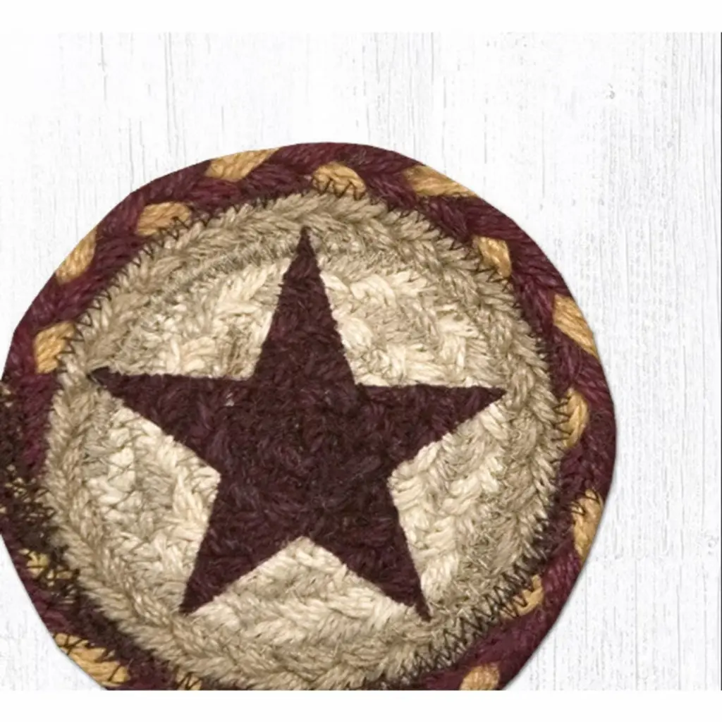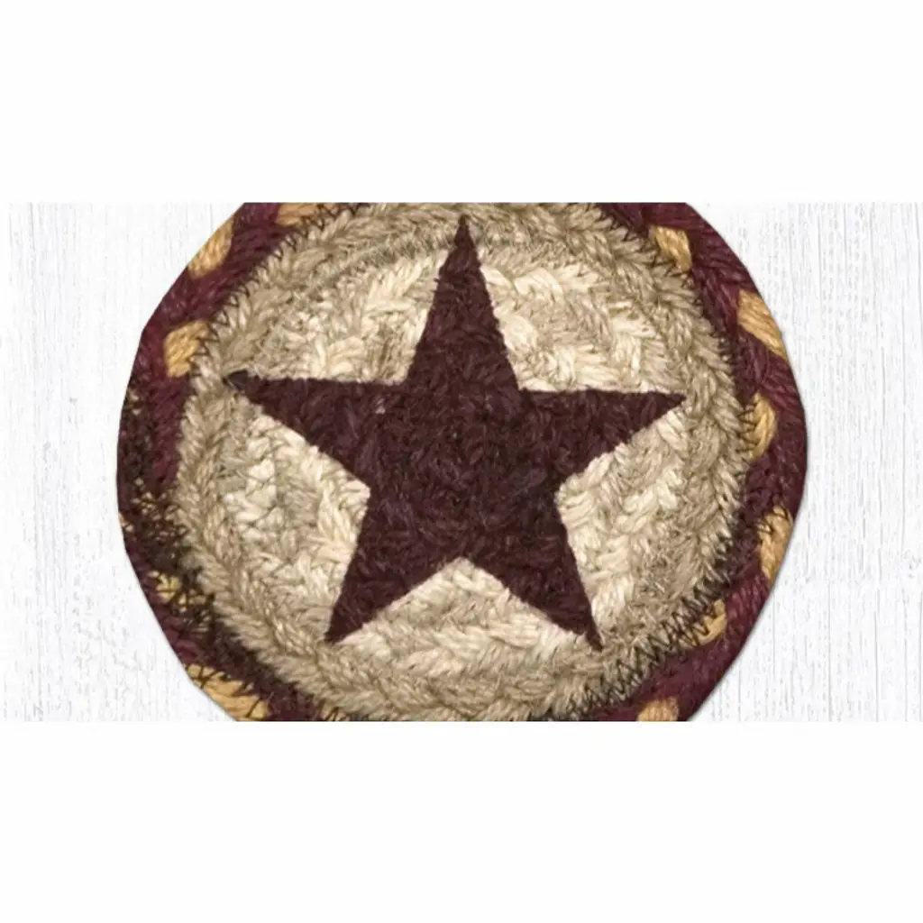 Earth Rugs Burgundy Star Coaster – 5"x5" Braided Jute With Primitive Americana Star Print For Rustic Farmhouse Decor