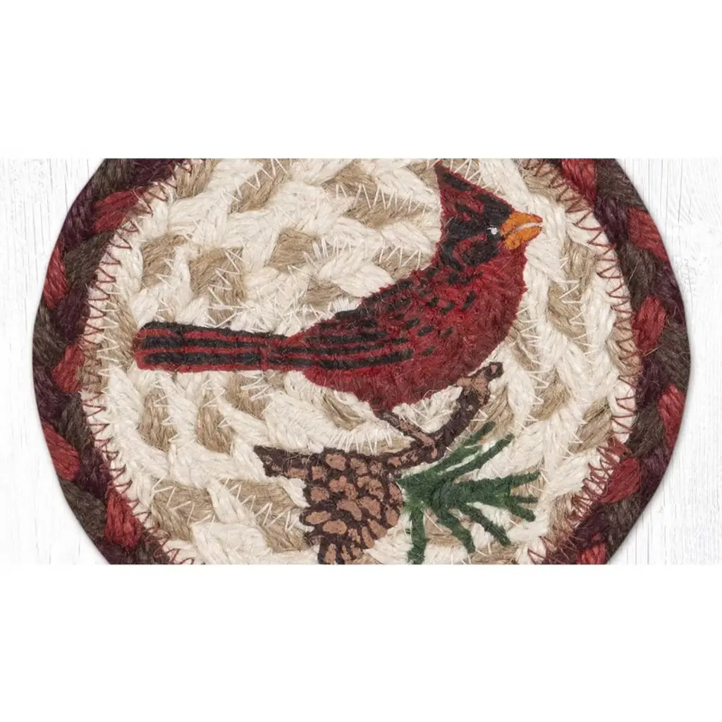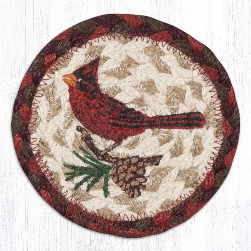 Earth Rugs Cardinal Pinecone Jute Coaster – 5"x5" Rustic Bird & Nature Print For Farmhouse Decor