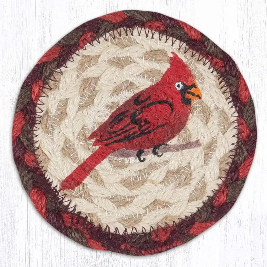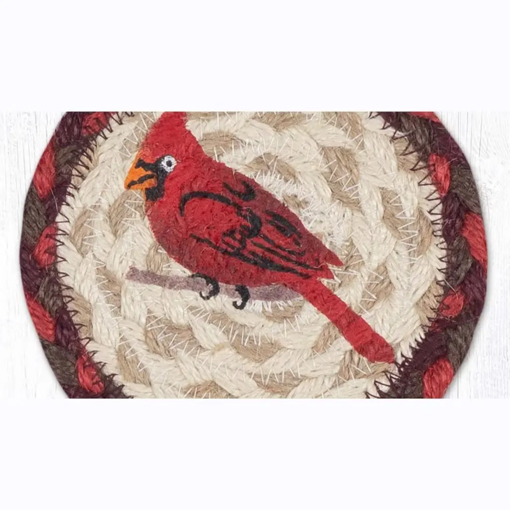 Earth Rugs Cardinal Printed Coaster – Red Songbird On Braided Jute, Rustic Winter Accent, 5"x5"