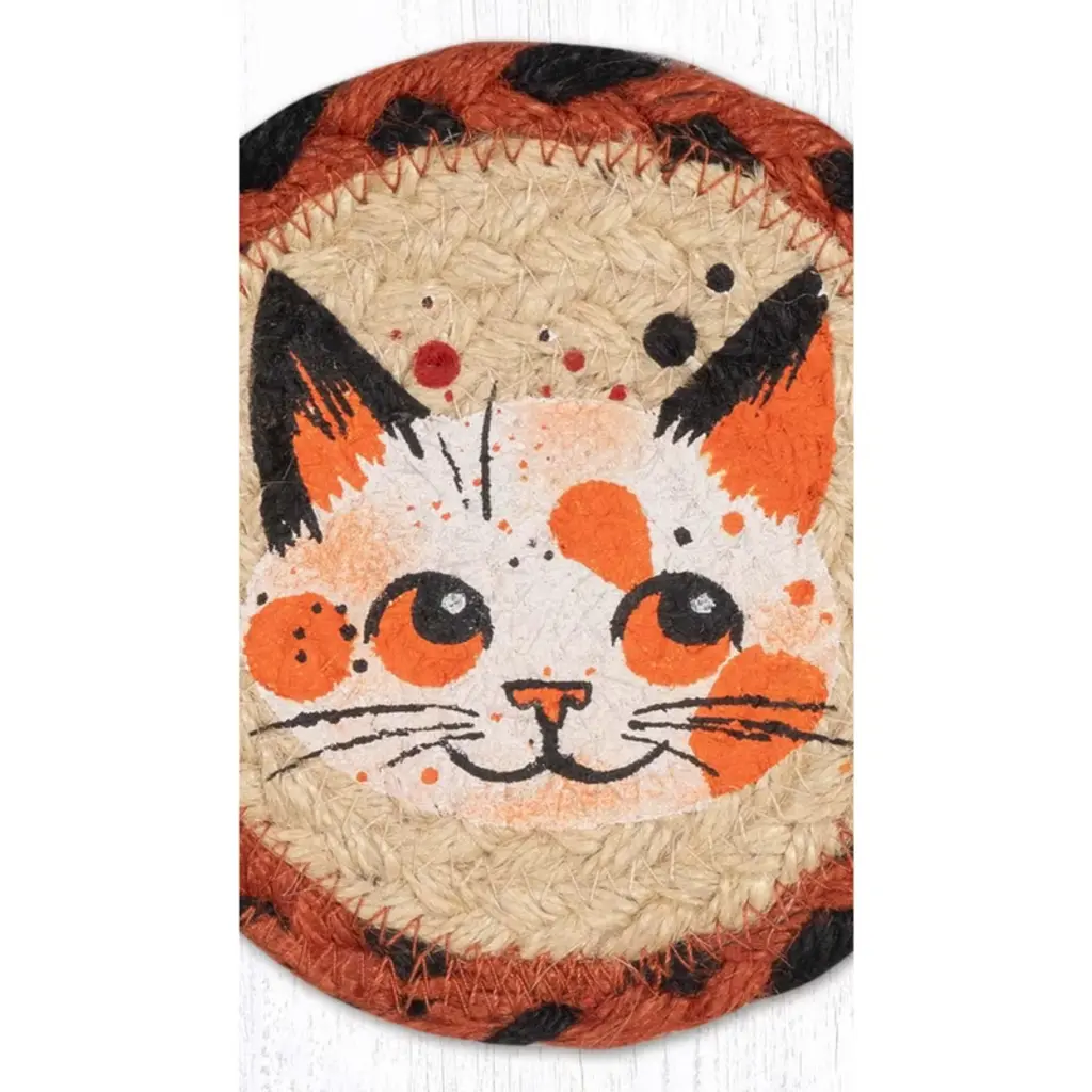 Earth Rugs Cat Face Coaster – Adorable Kitty Printed Square Drink Mat 5"x5"