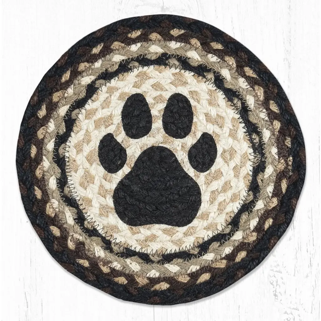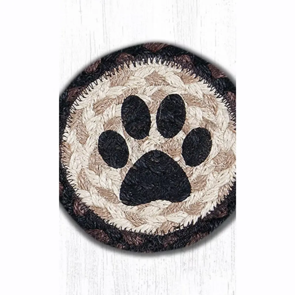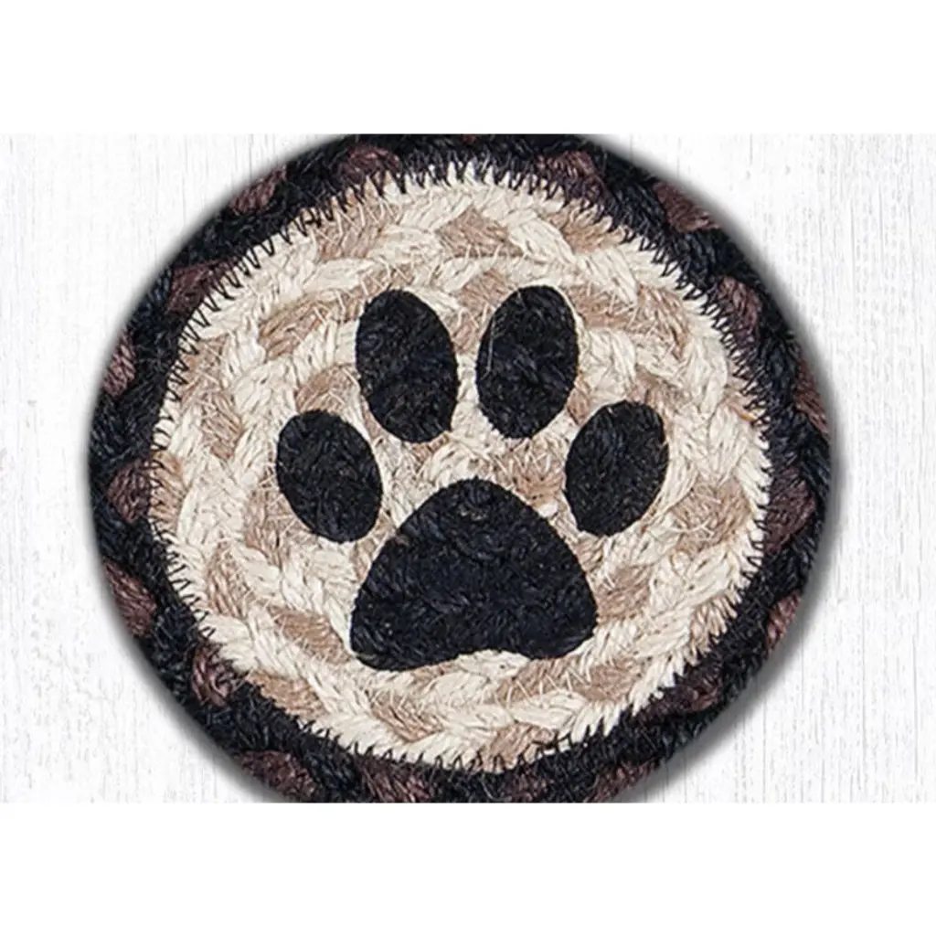 Earth Rugs Cat Paw Jute Coaster – 5"x5" Round Hand Stenciled Rustic Drink Mat