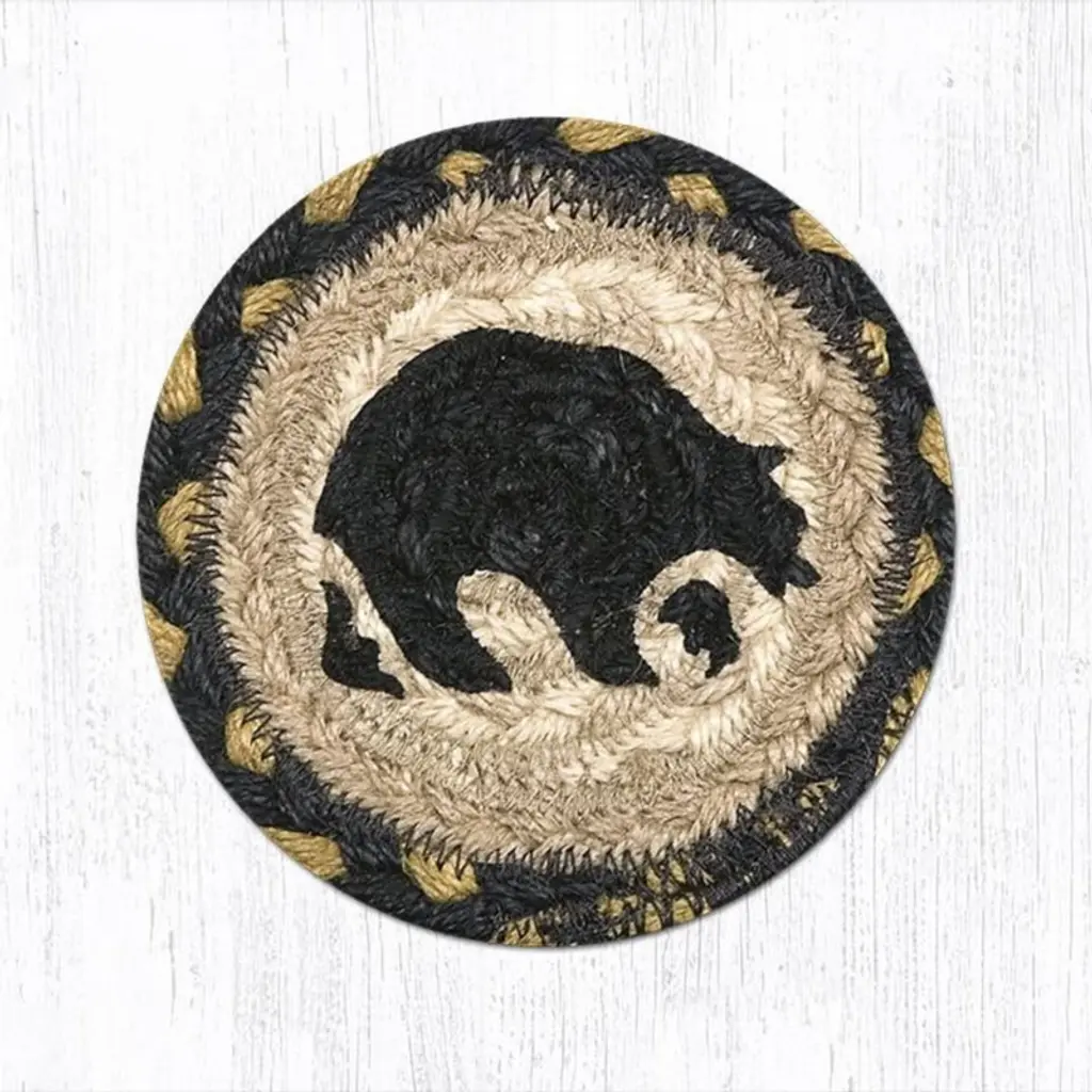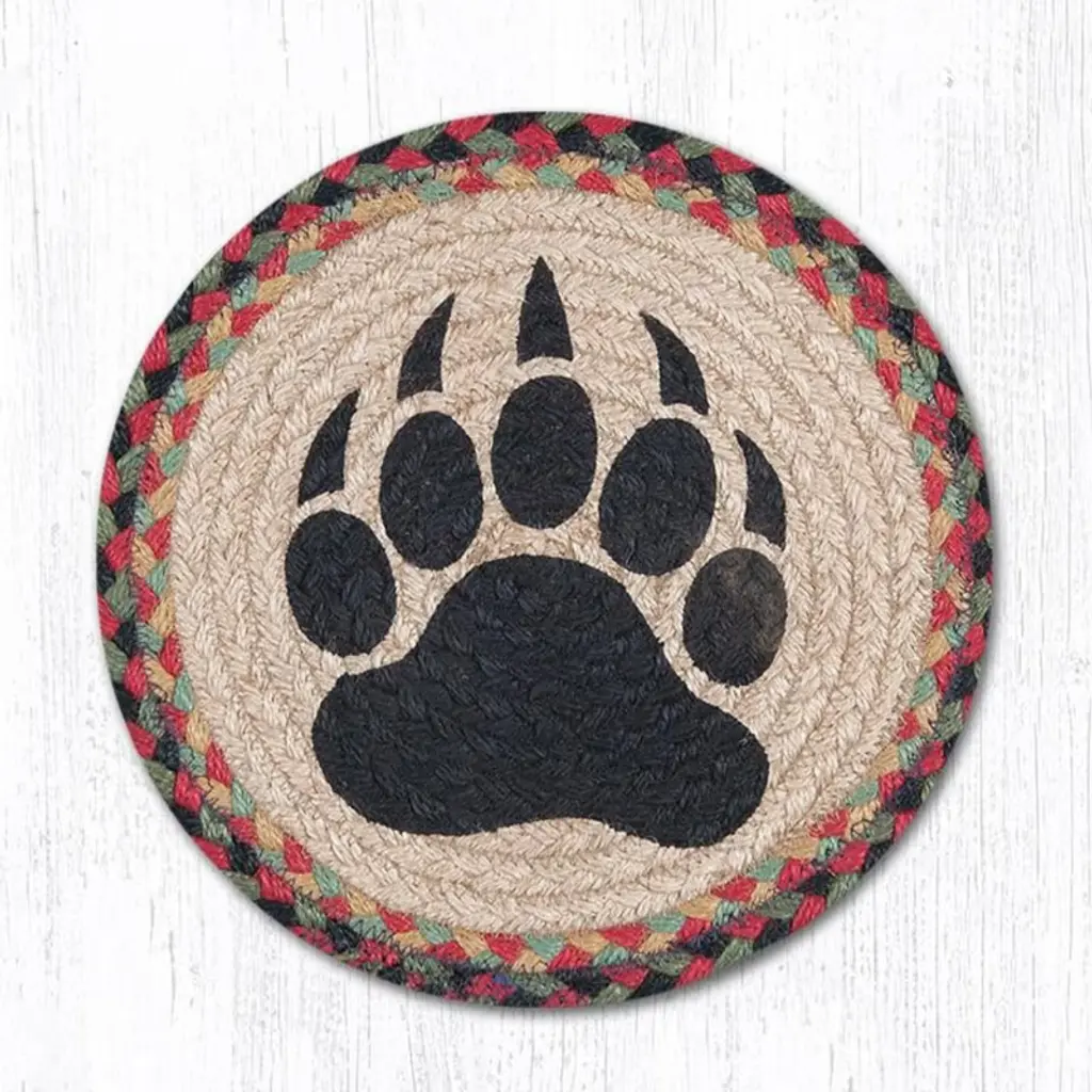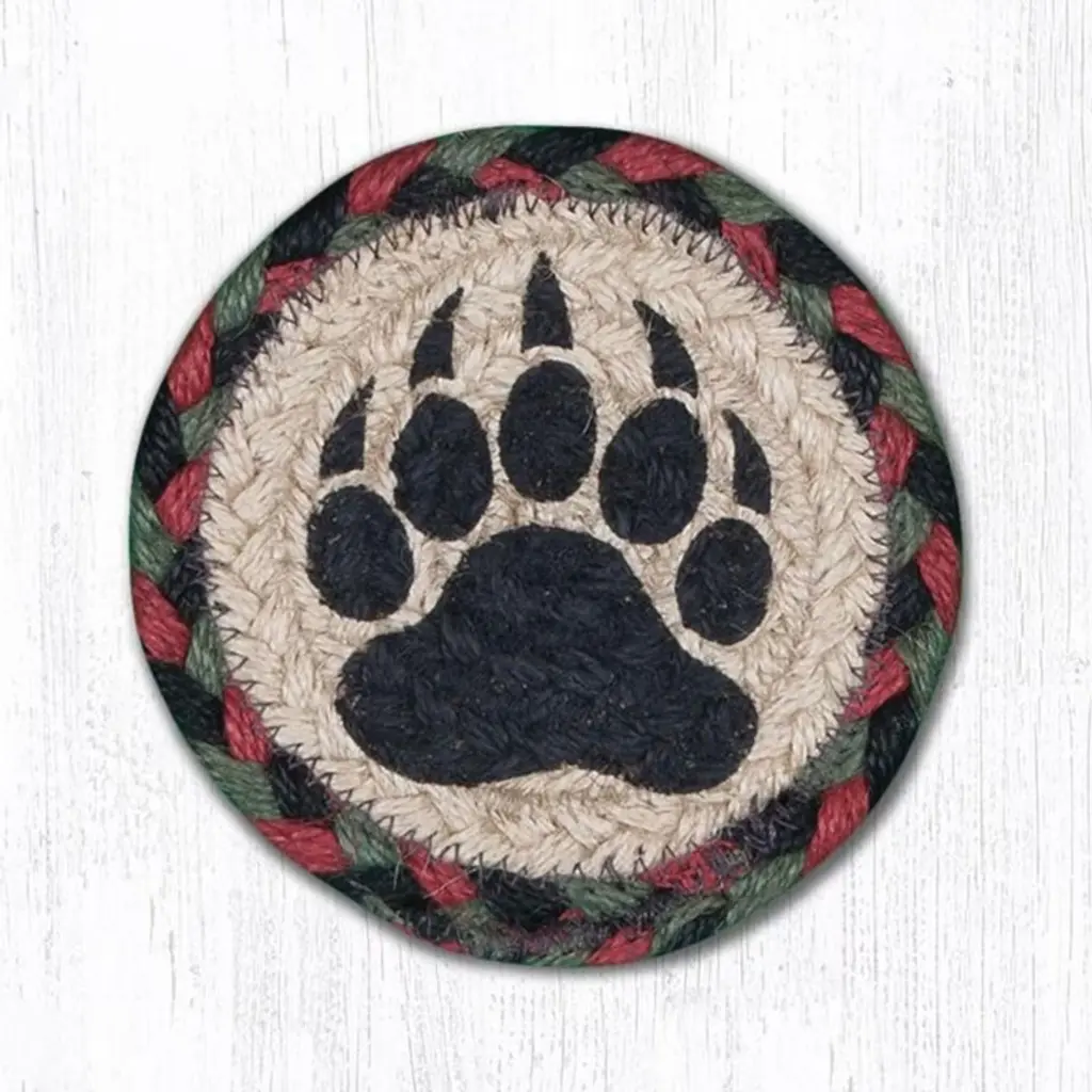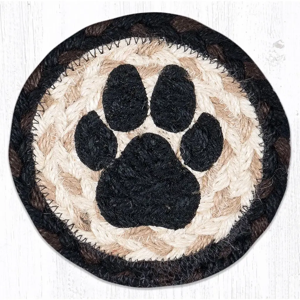 Earth Rugs Cat Paw Jute Coaster – 5"x5" Round Hand Stenciled Rustic Drink Mat